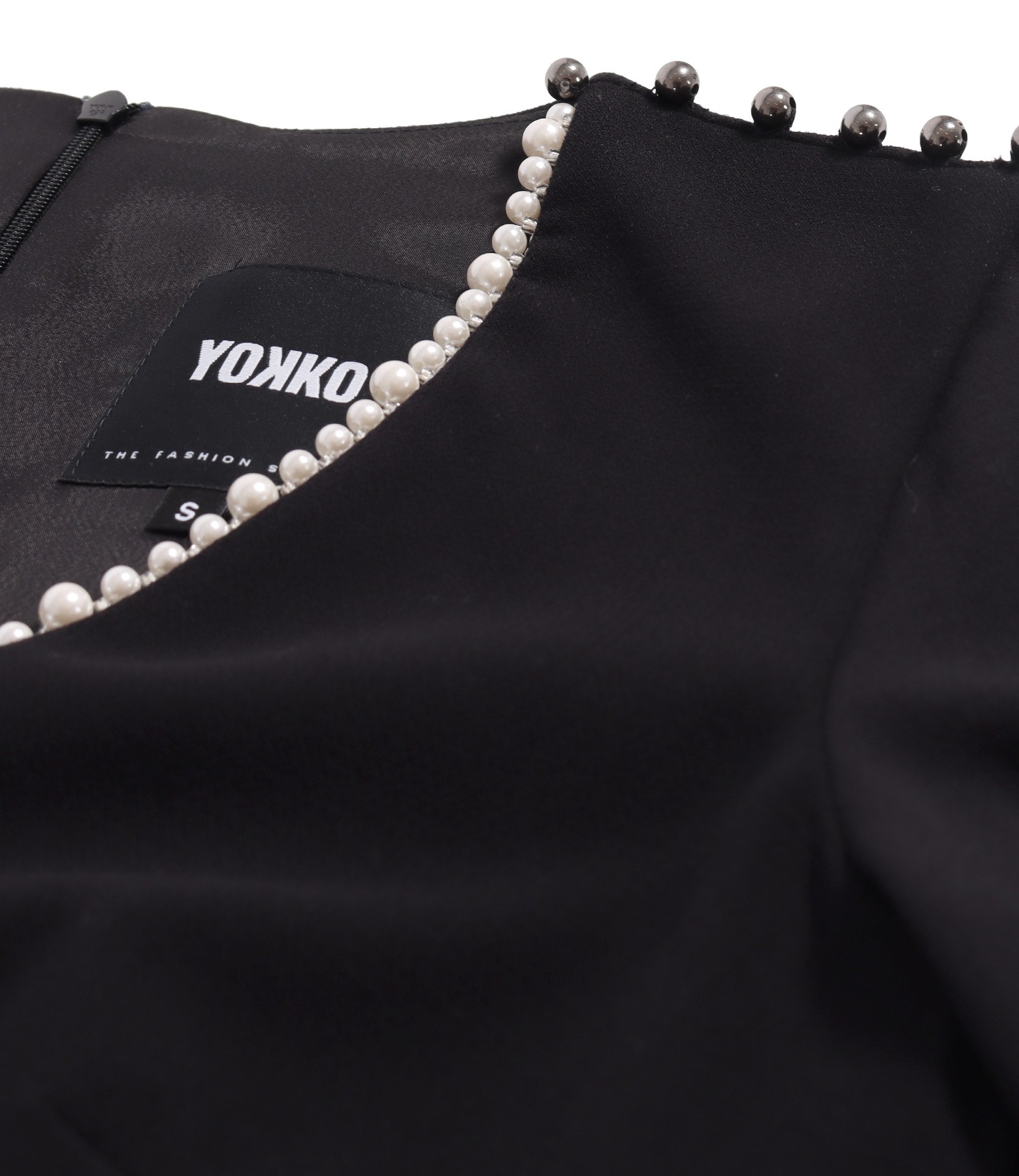 Rochie eleganta cu perle la decolteu (Negru), marimea
