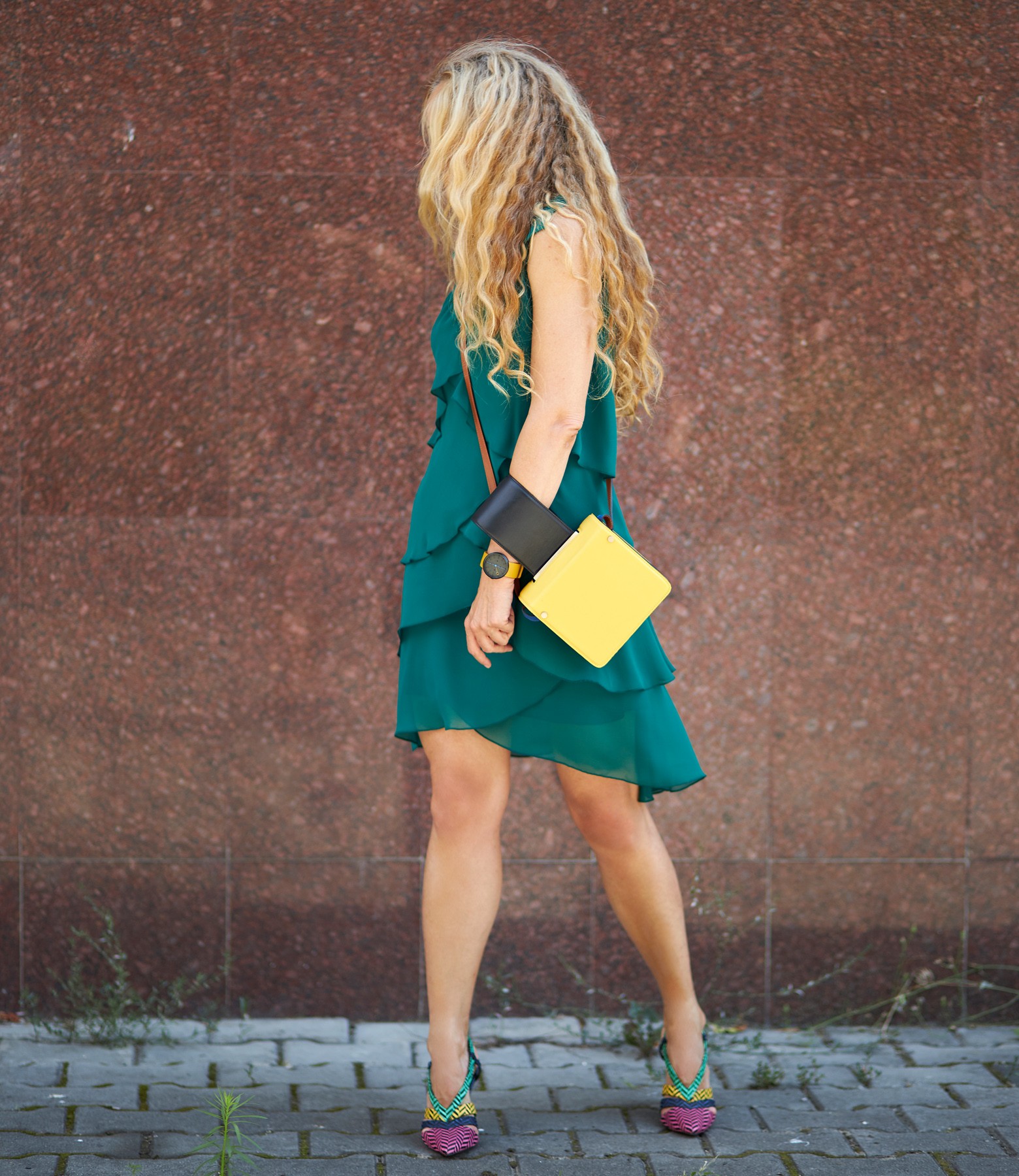 Rochie eleganta cu volane din voal si aplicatie de perle (verde), marimea