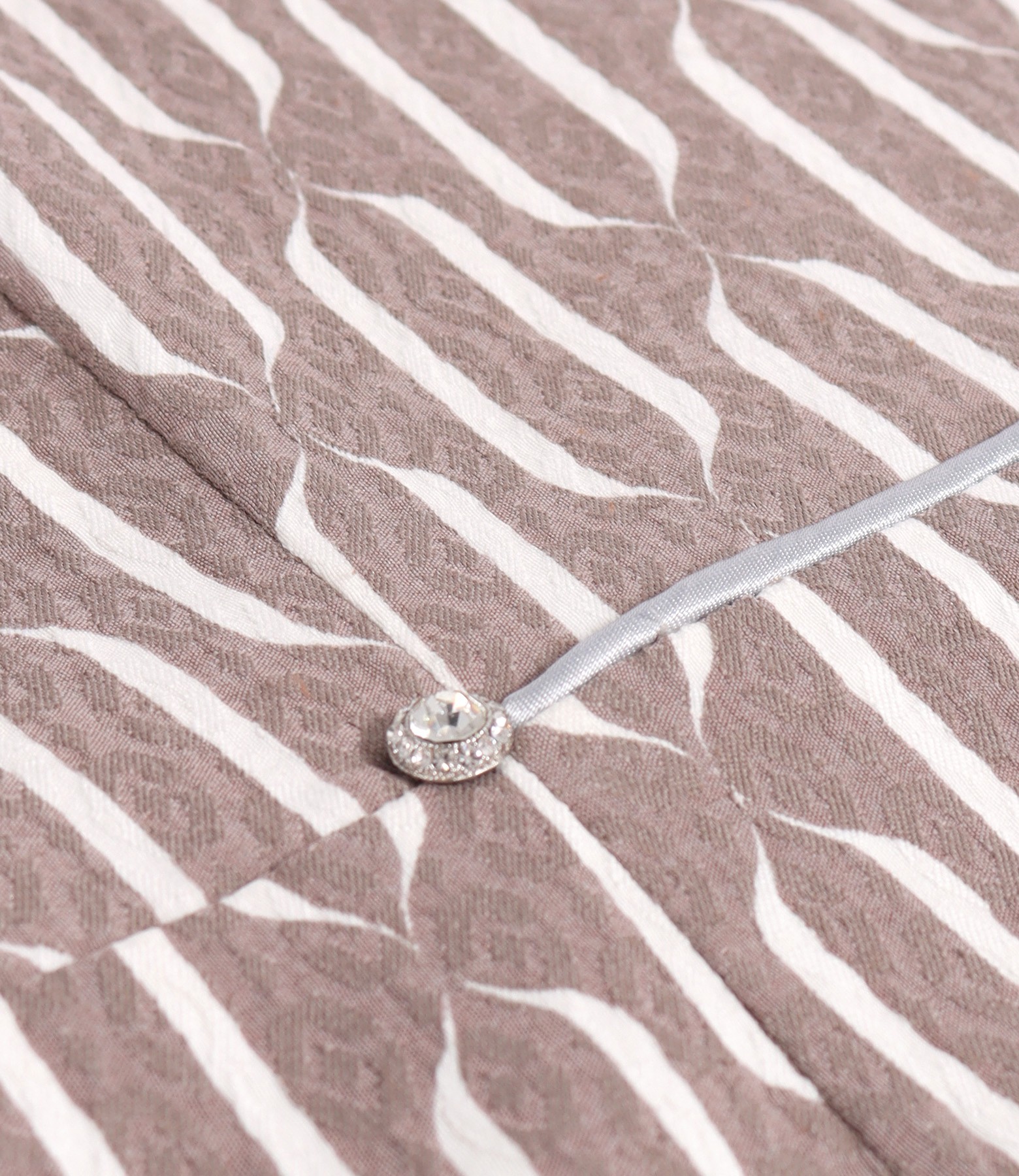 Rochie eleganta din brocart de bumbac elastic imprimat cu motive geometrice, necaptusita, cu maneci cazute, decolteu rotund si nasturi decorativi tip cristale in talie. Se inchide cu fermoar ascuns pe mijloc spate.