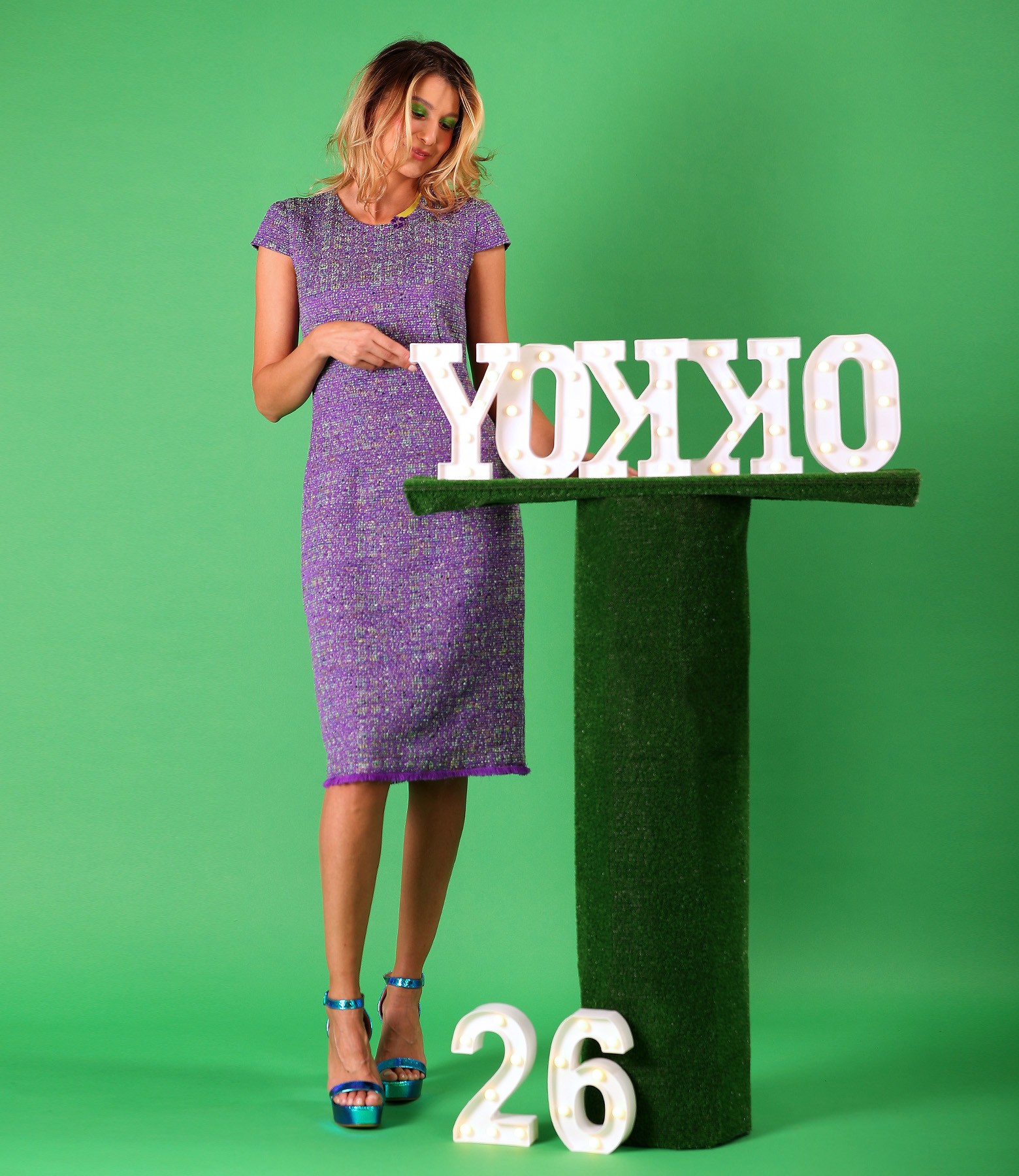 Rochie eleganta din bucle cu bumbac si fir de lurex (Mov), marimea