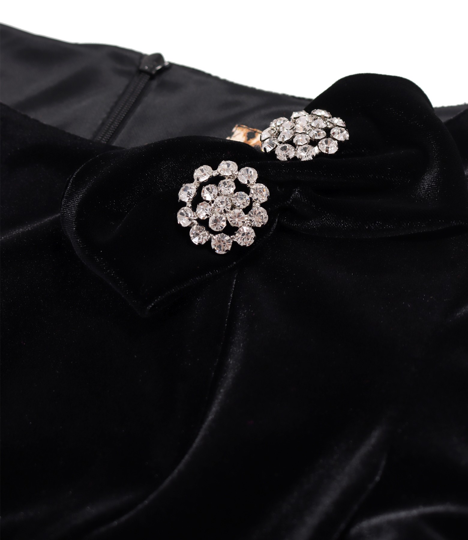 Rochie eleganta din catifea elastica cu brosa cu cristale (Negru), marimea