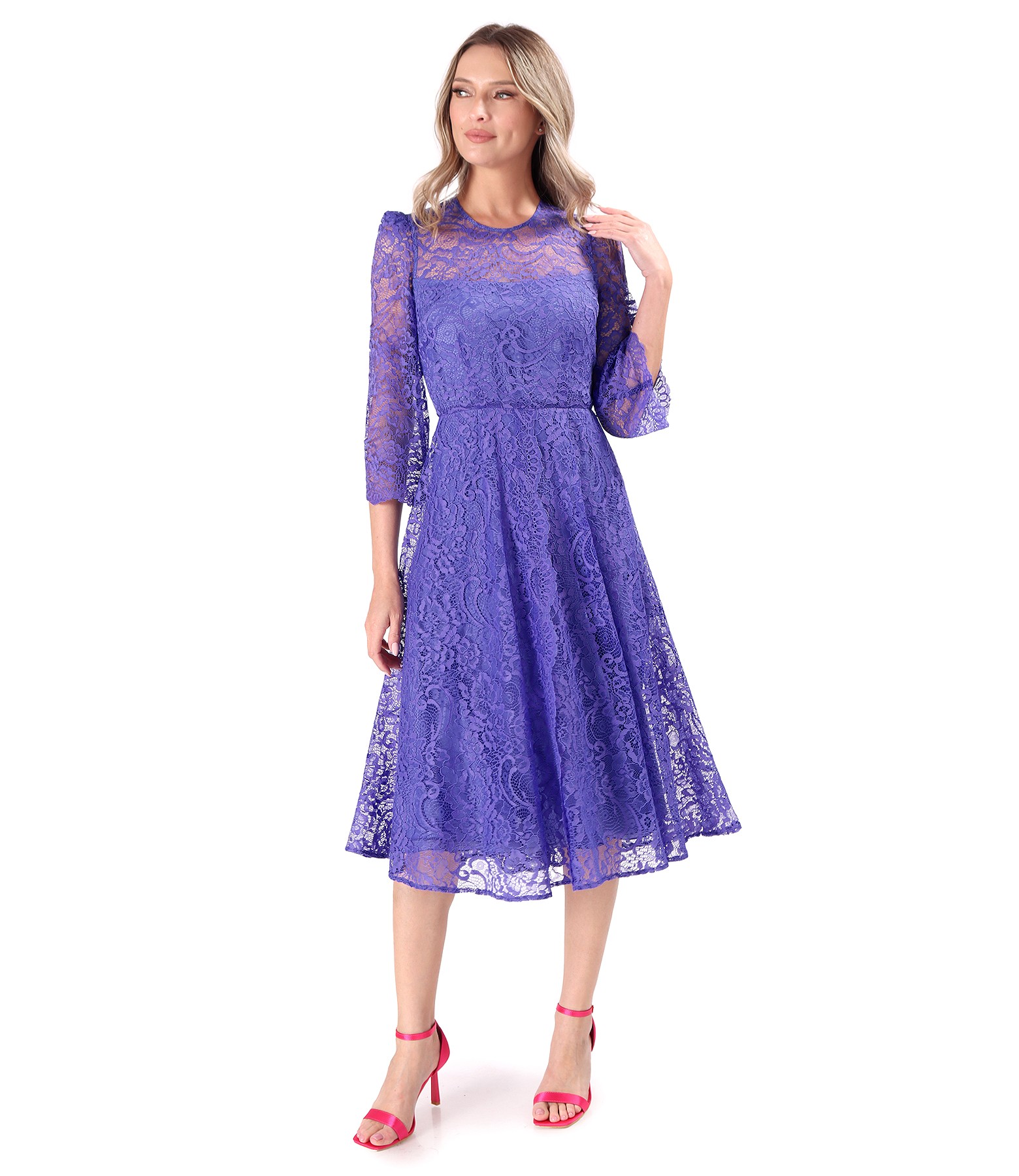 Rochie eleganta din dantela fina cu motive florale (Mov), marimea