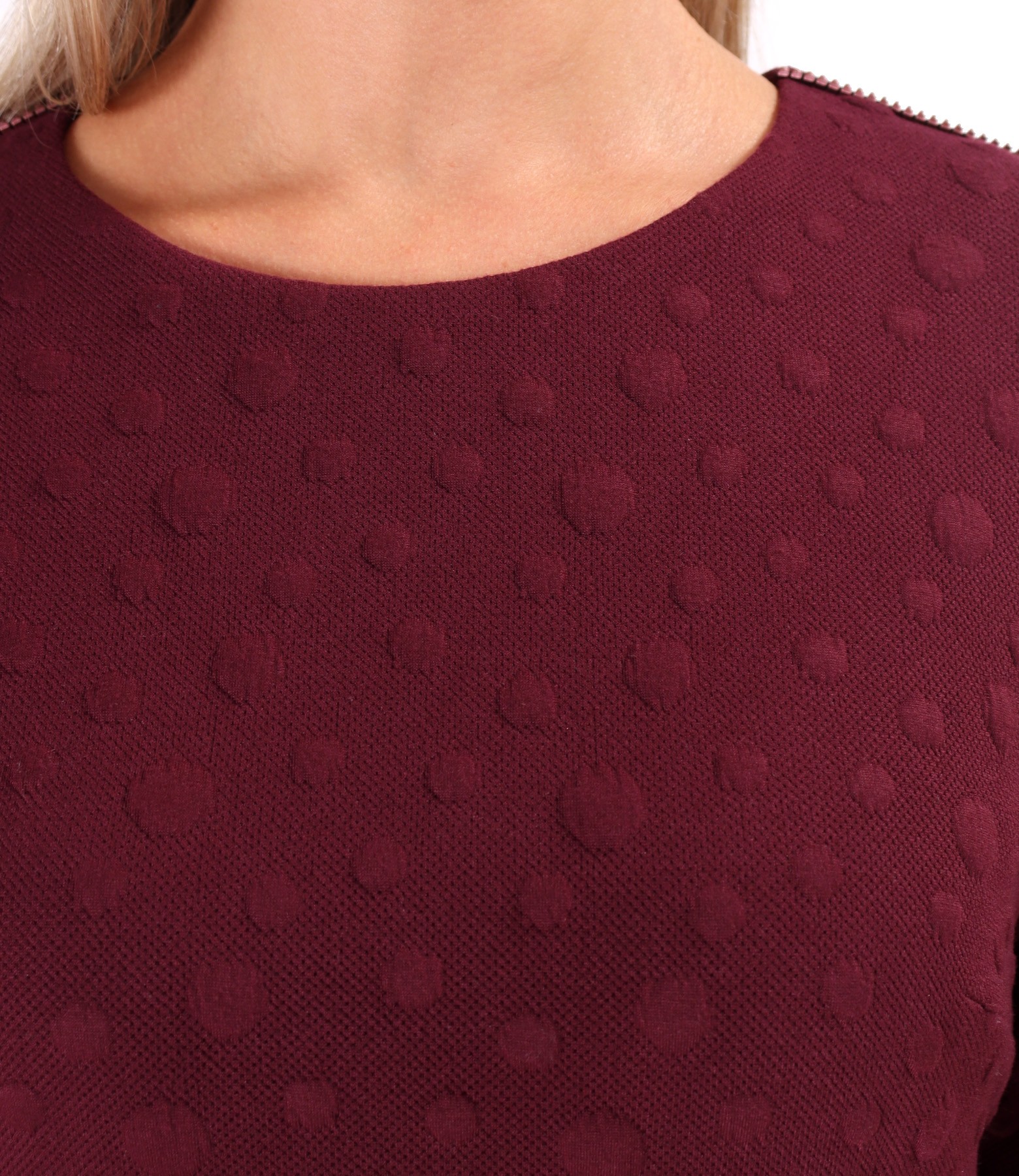 Rochie eleganta din jerse elastic gros cu buline tesute in relief (Rosu Grena), marimea