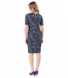Rochie eleganta din jerse elastic de viscoza imprimat, necaptusita, cu maneci scurte si decolteu rotund.