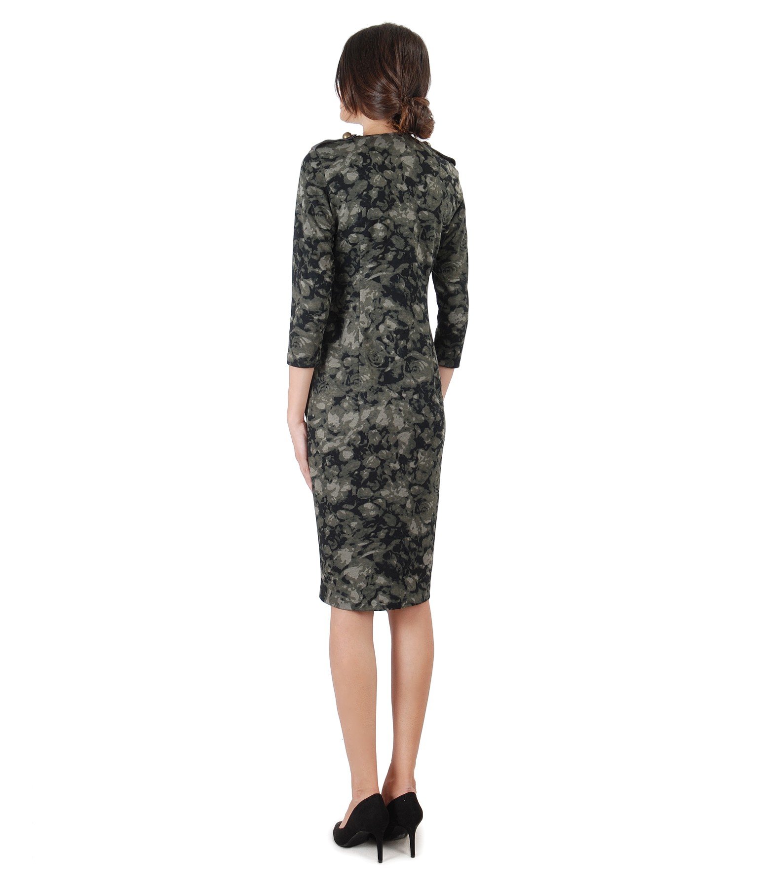 Rochie eleganta din jerse imprimat cu motive florale (kaki), marimea