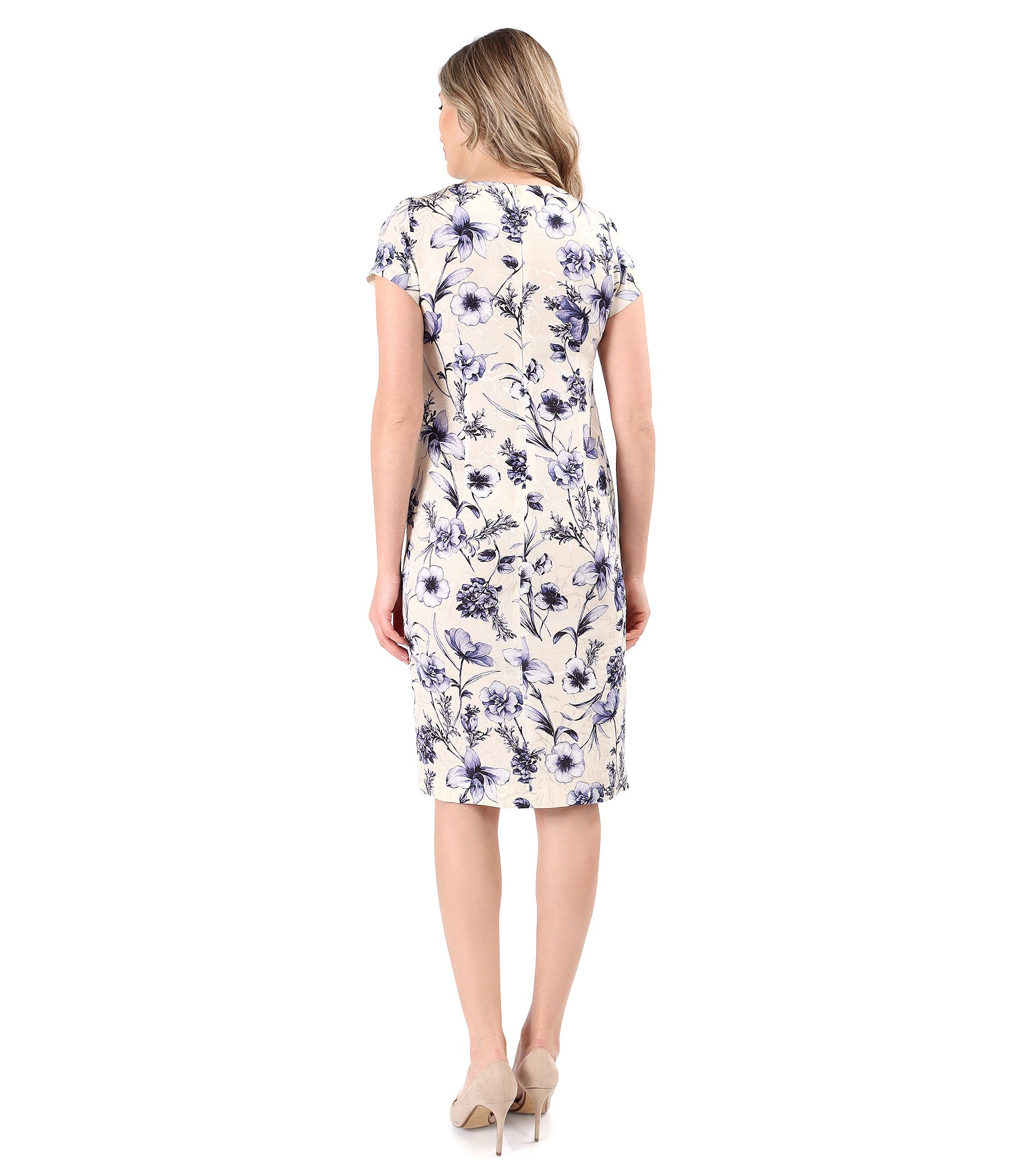 Rochie eleganta din viscoza tip jacquard cu efect satinat pretios si cu imprimeu floral, necaptusita, cu decolteu rotund. Se inchide cu fermoar ascuns pe mijloc spate.