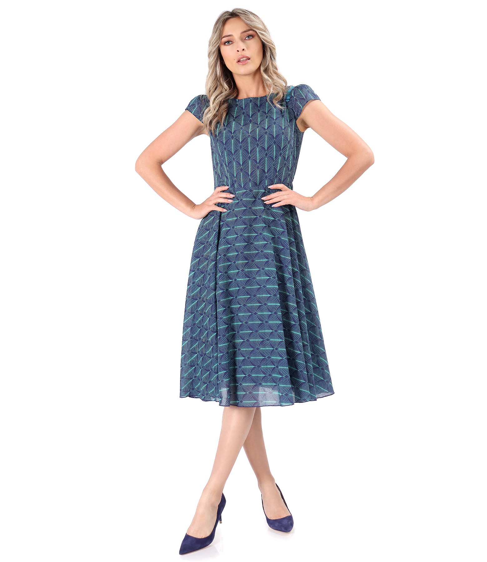 Rochie eleganta din voal de bumbac imprimat cu motive florale (Bleumarin), marimea