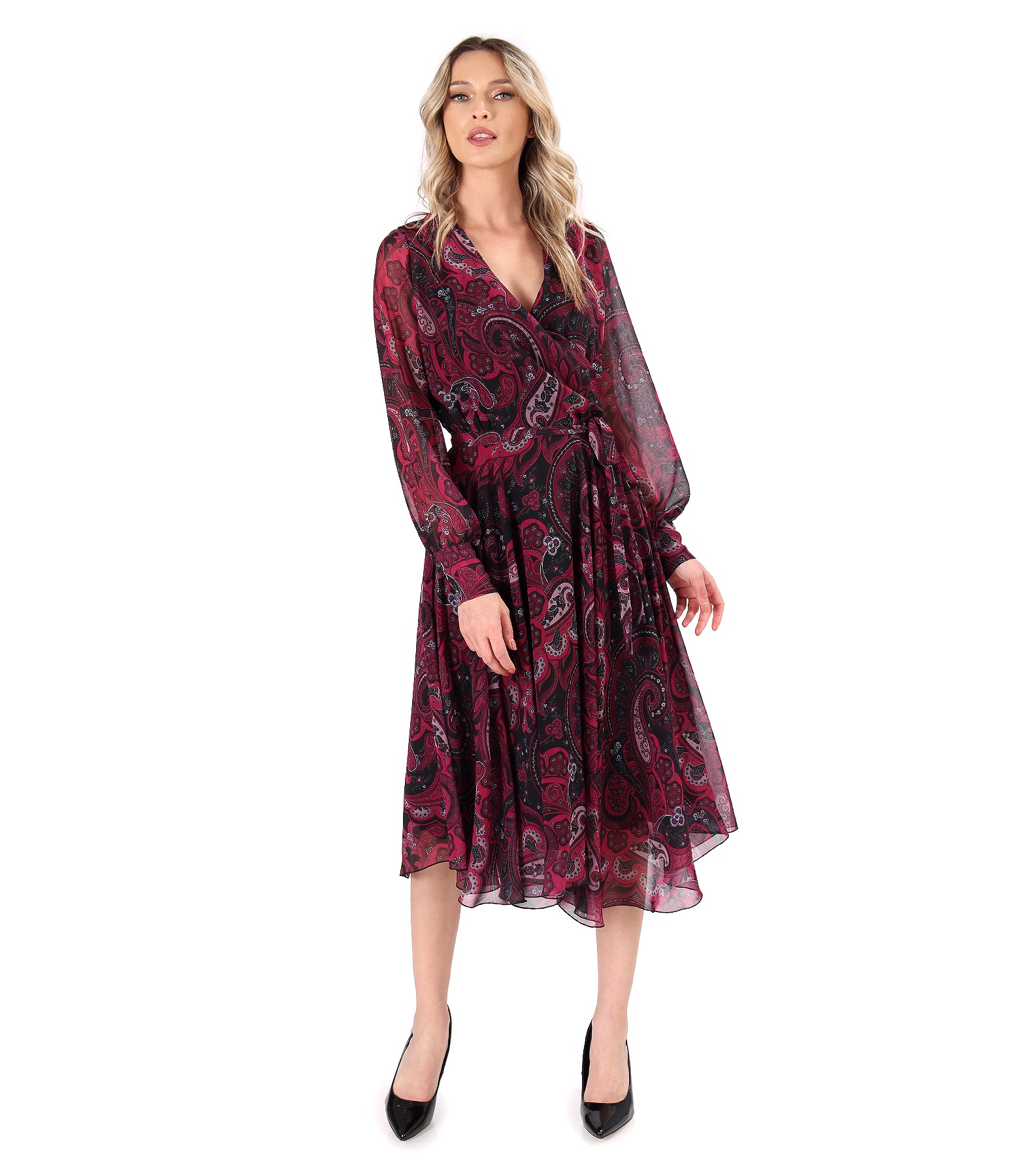 Rochie eleganta din voal imprimat cu motive paisley (Rosu Grena), marimea