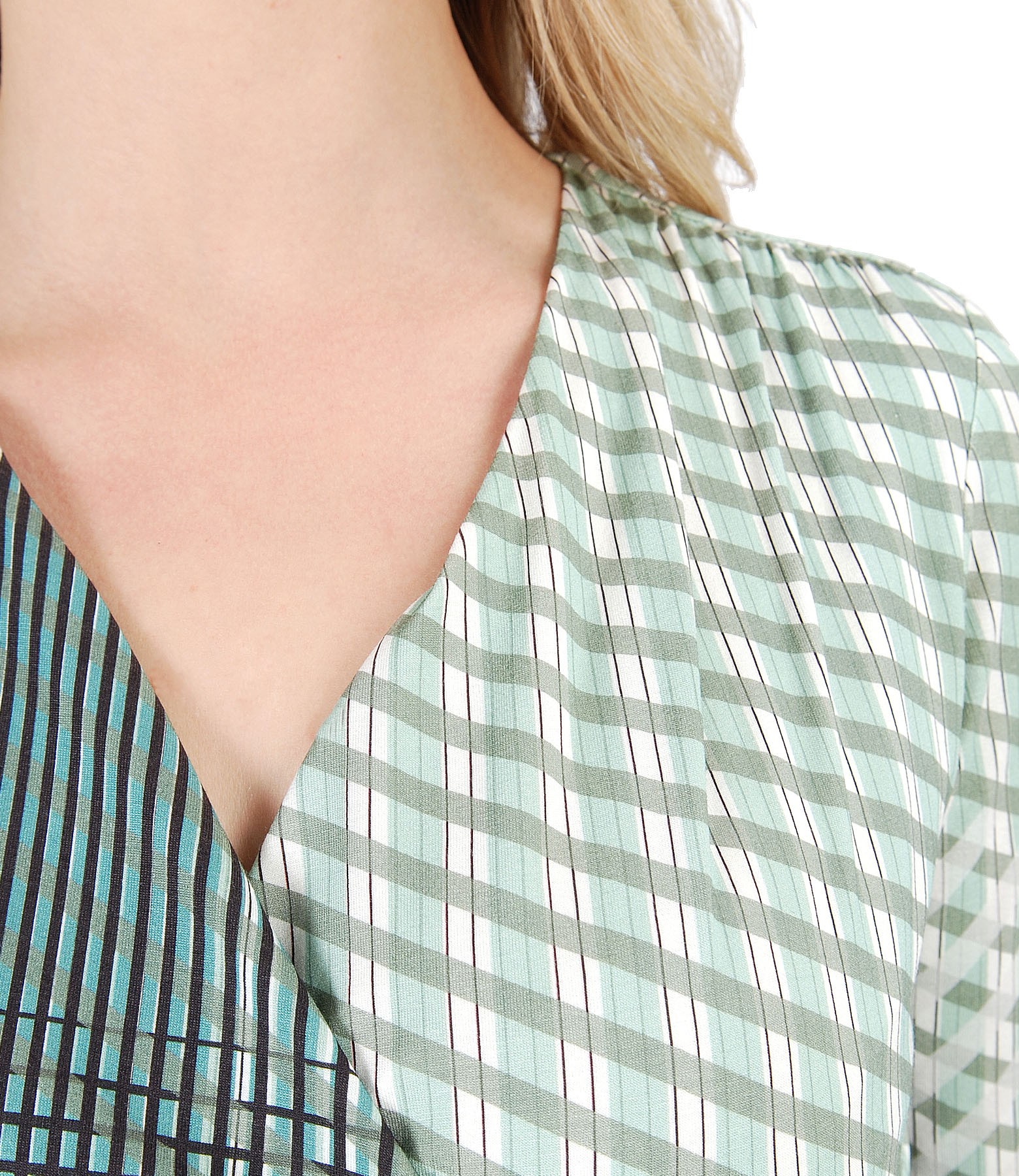 Rochie eleganta din jerse elastic imprimat, cu maneci 3/4, pieptii petrecuti si cu umeri incretiti in partea din fata . Nu are sistem de inchidere.