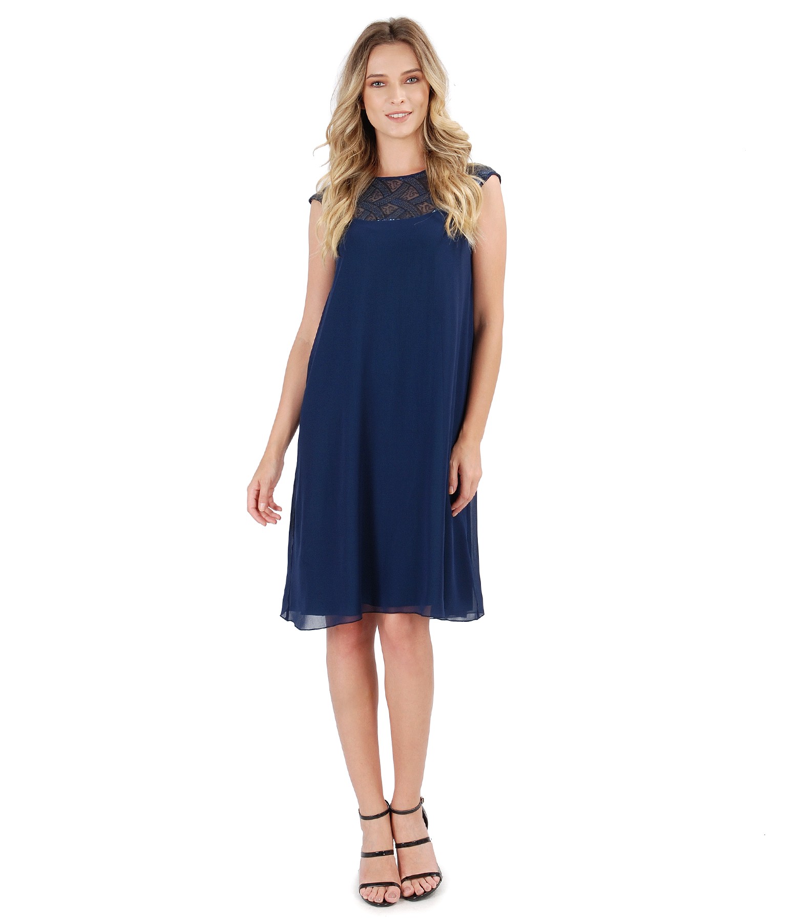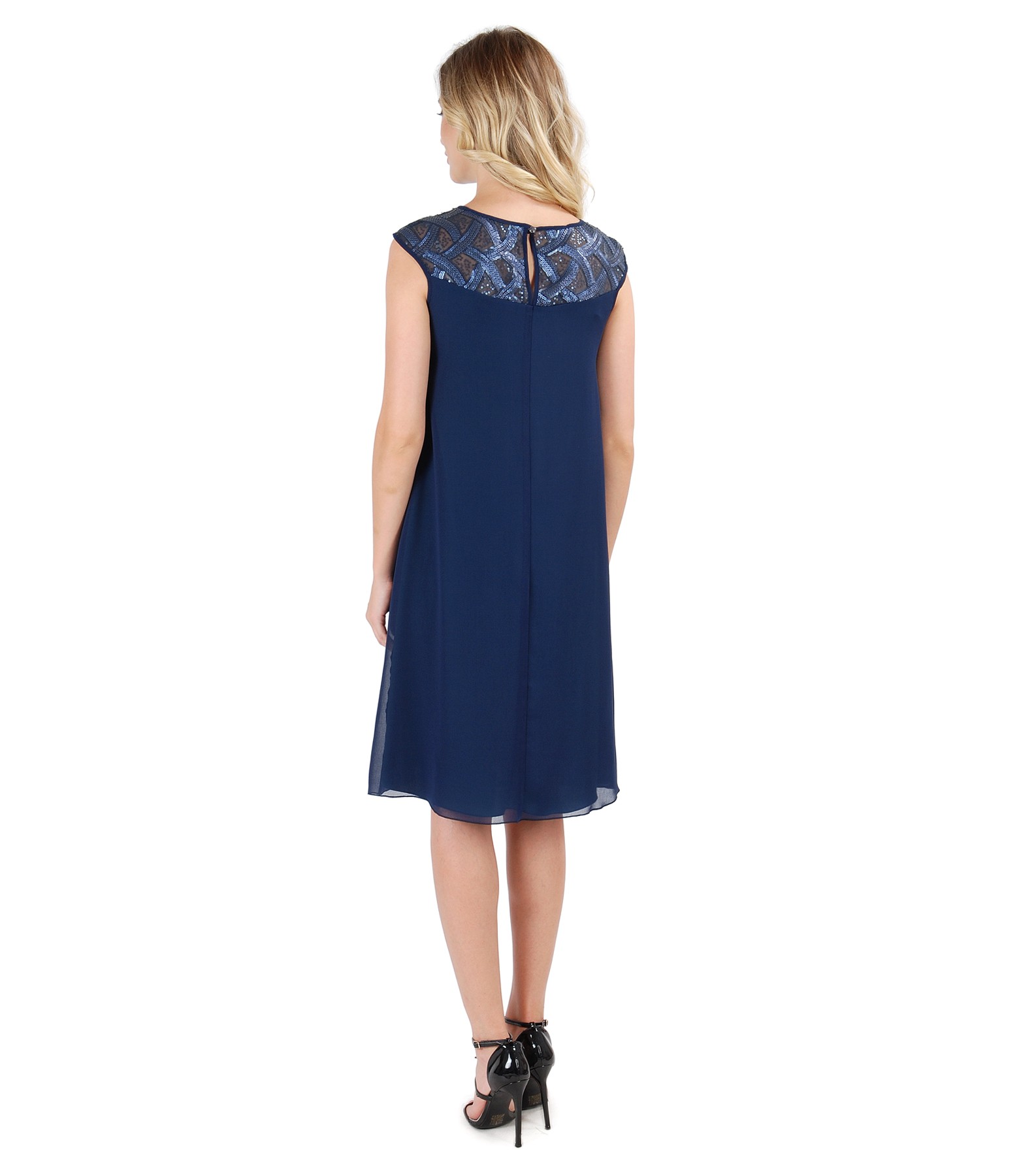 Rochie evazata din voal cu platca din dantela cu paiete (Bleumarin), marimea