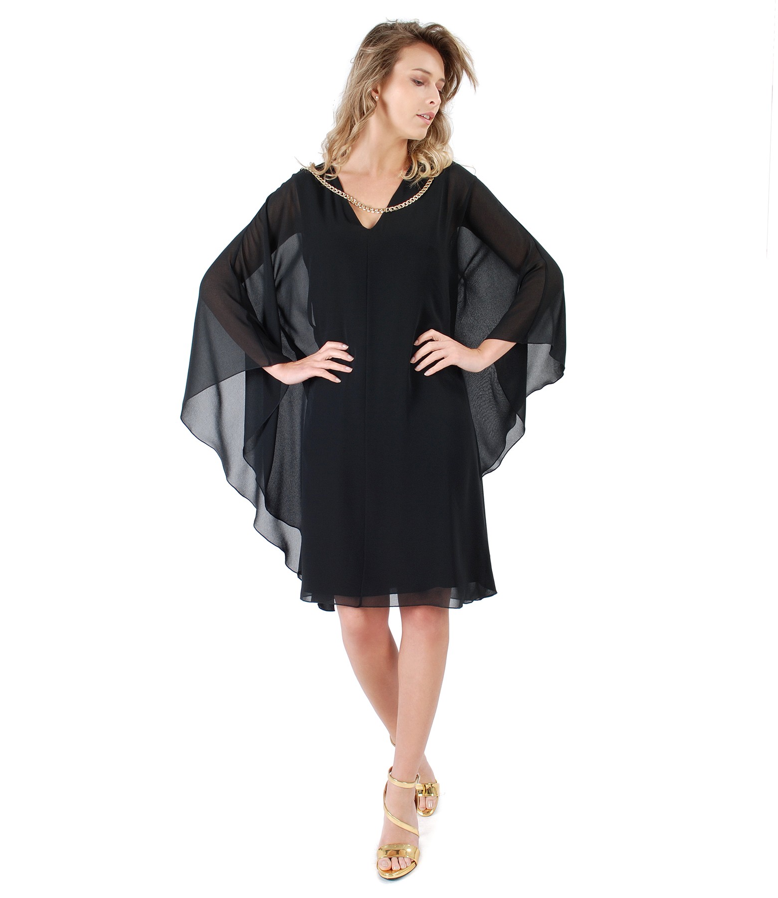 Rochie fluture din voal cu lant decorativ (Negru), marimea