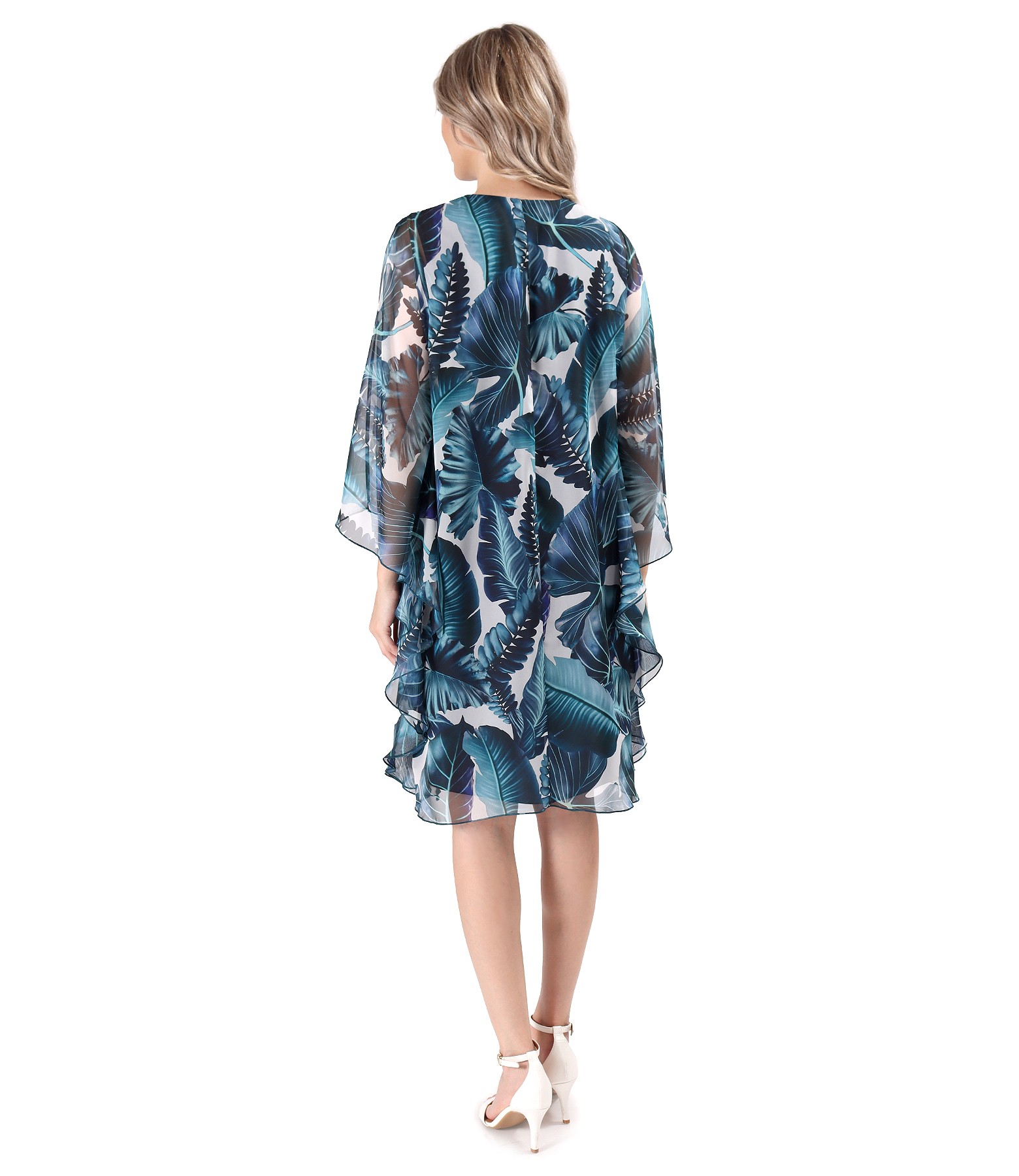 Rochie fluture din voal fin imprimat digital cu motive florale (Turcoaz), marimea