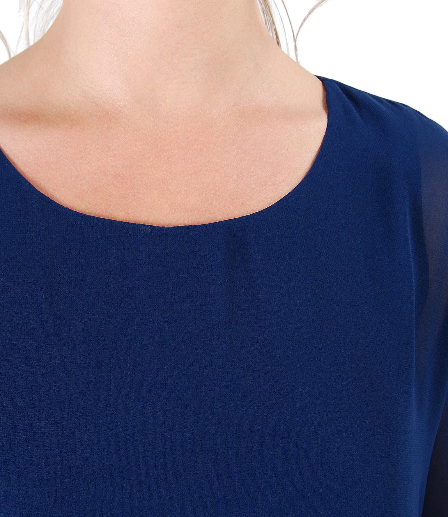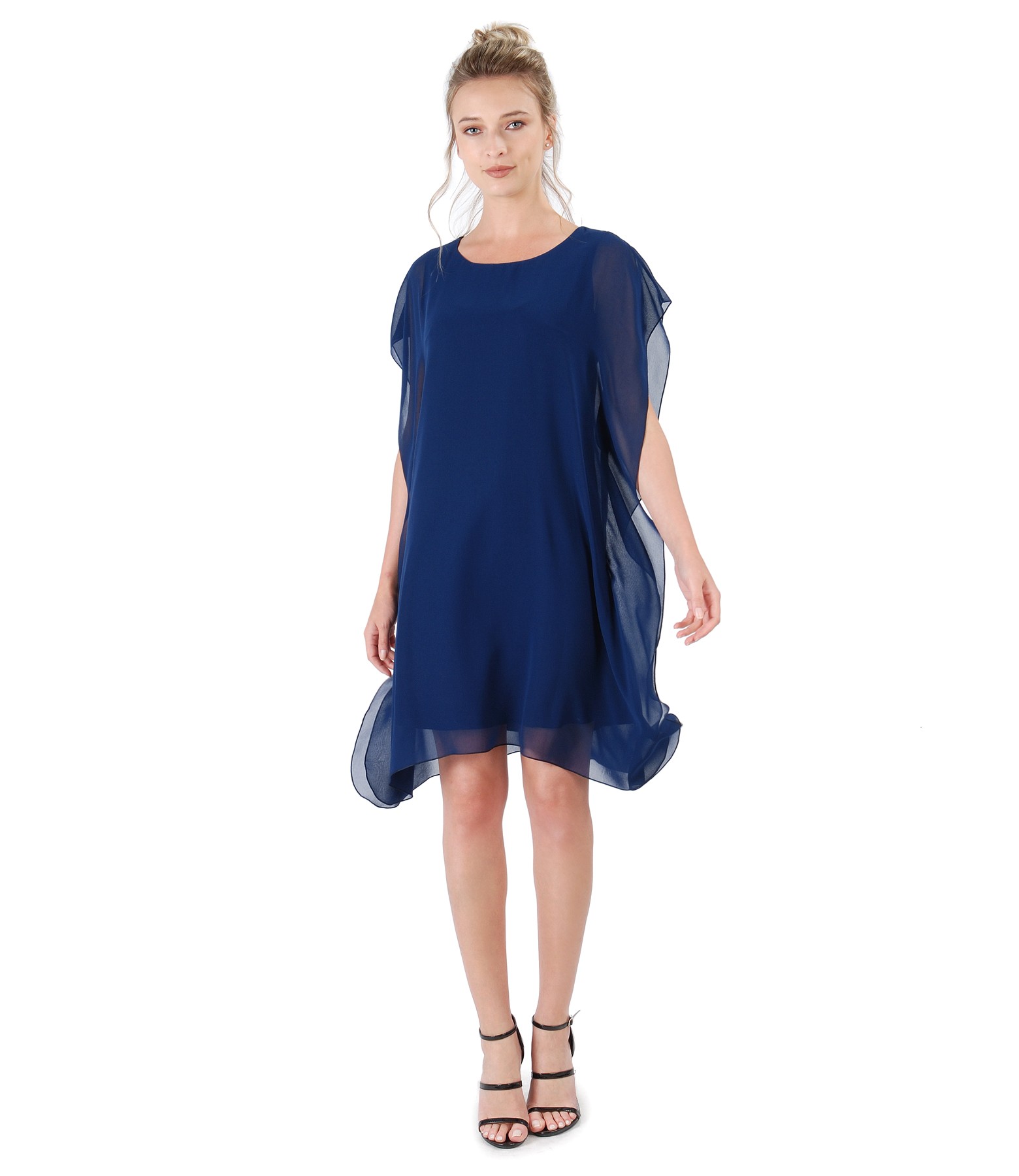 Rochie fluture din voal, captusita, fara maneci si cu decolteu rotund. Nu are sistem de inchidere.
