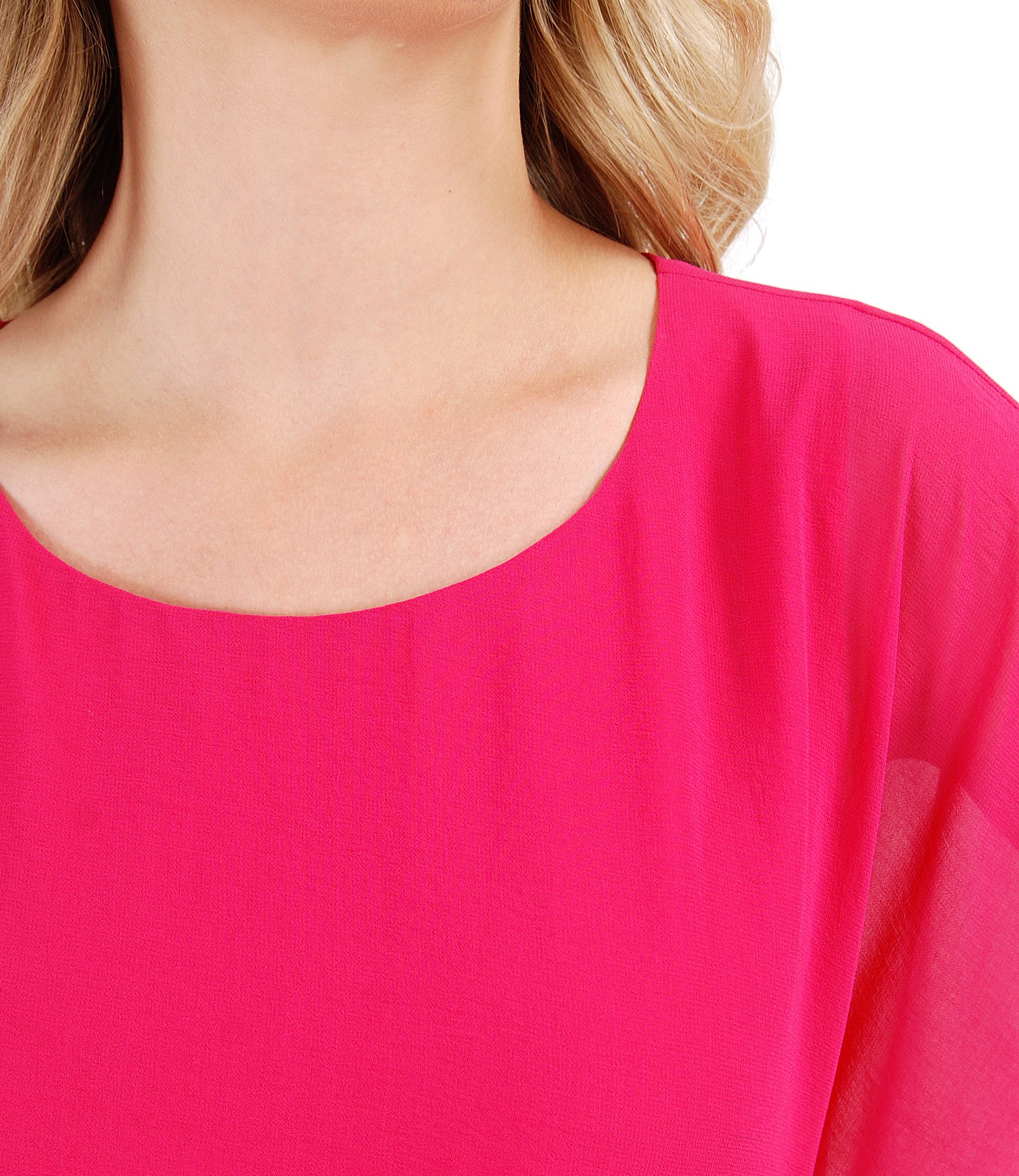 Rochie fluture din voal, captusita, fara maneci si cu decolteu rotund. Nu are sistem de inchidere.
