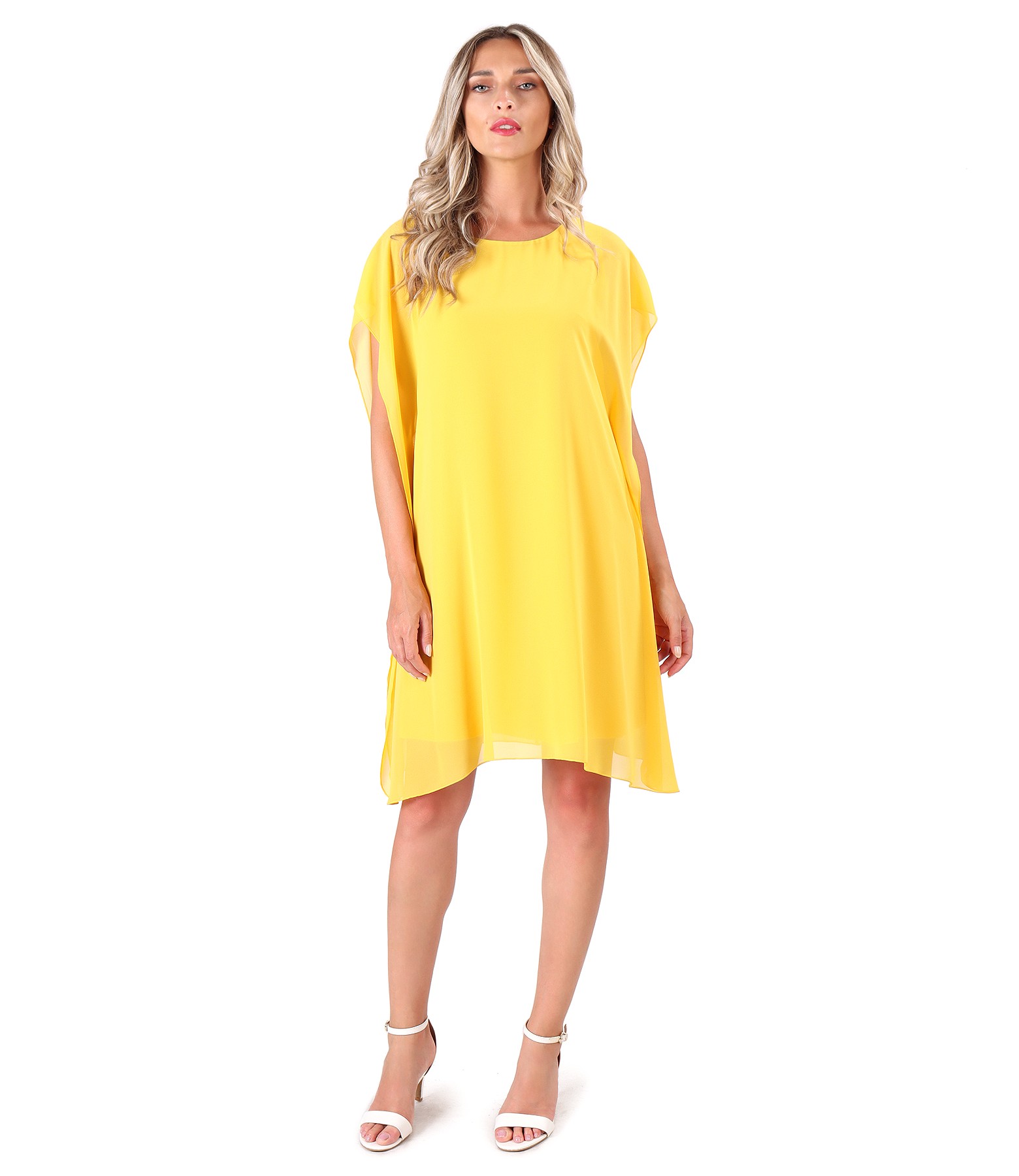 Rochie fluture din voal uni, dublata cu viscoza, fara maneci si cu decolteu rotund. Nu are sistem de inchidere.