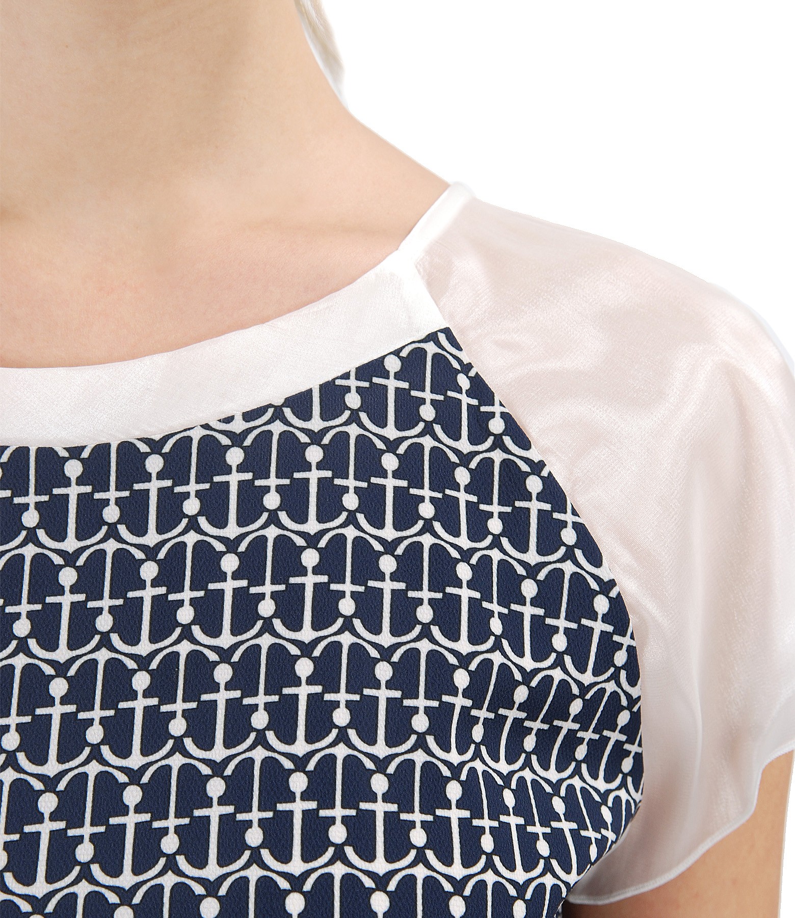 Rochie lejera, necaptusita, cu decolteu rotund, maneci scurte din organza si snur in talie.