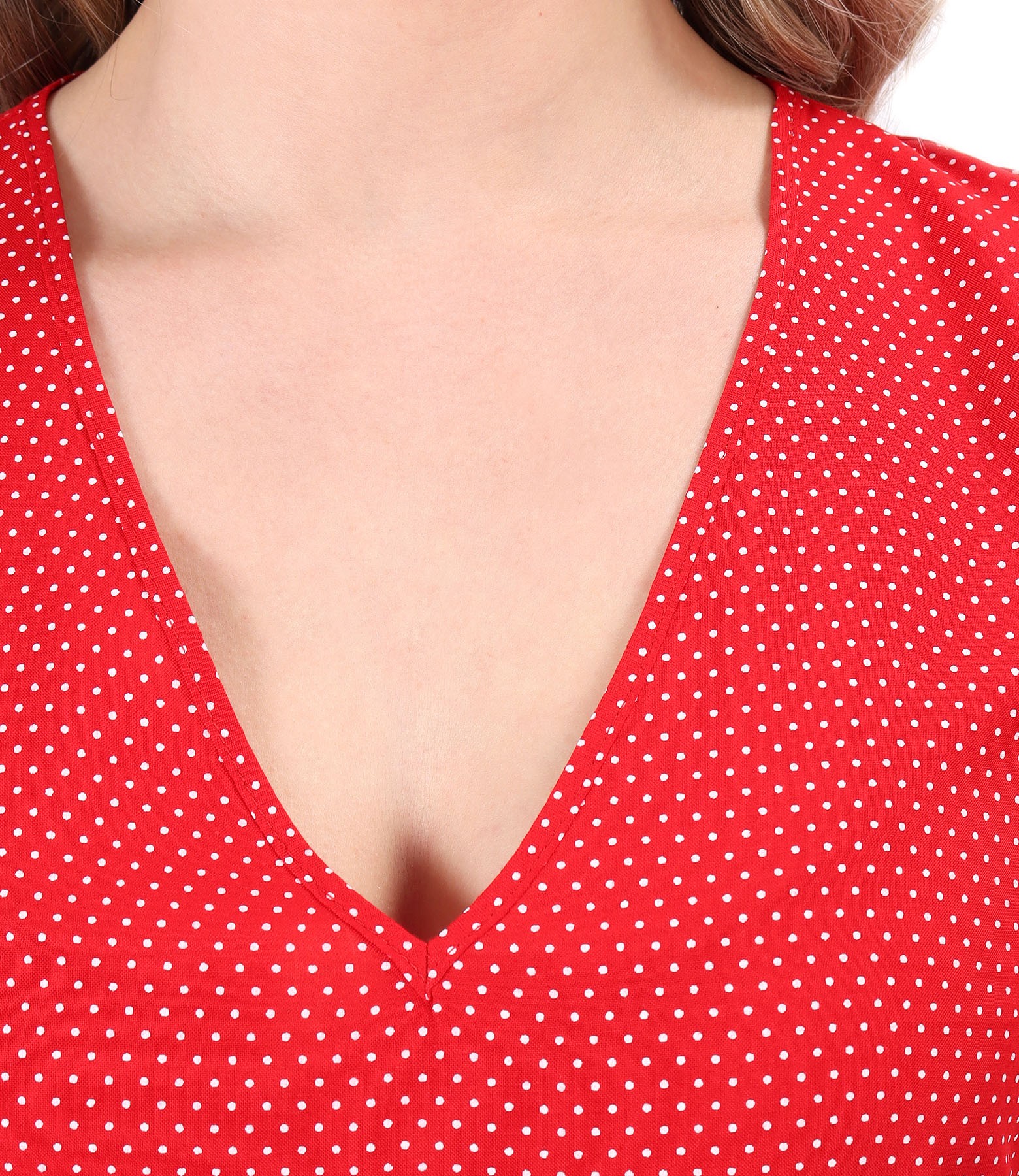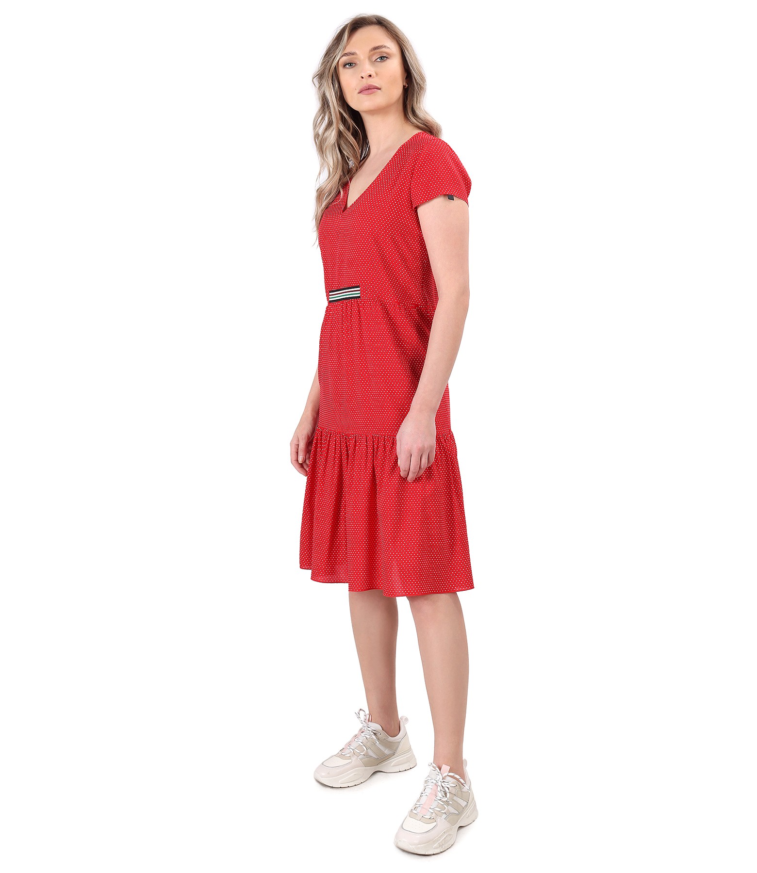 Rochie lejera cu volane din viscoza imprimata cu picouri (Rosu), marimea