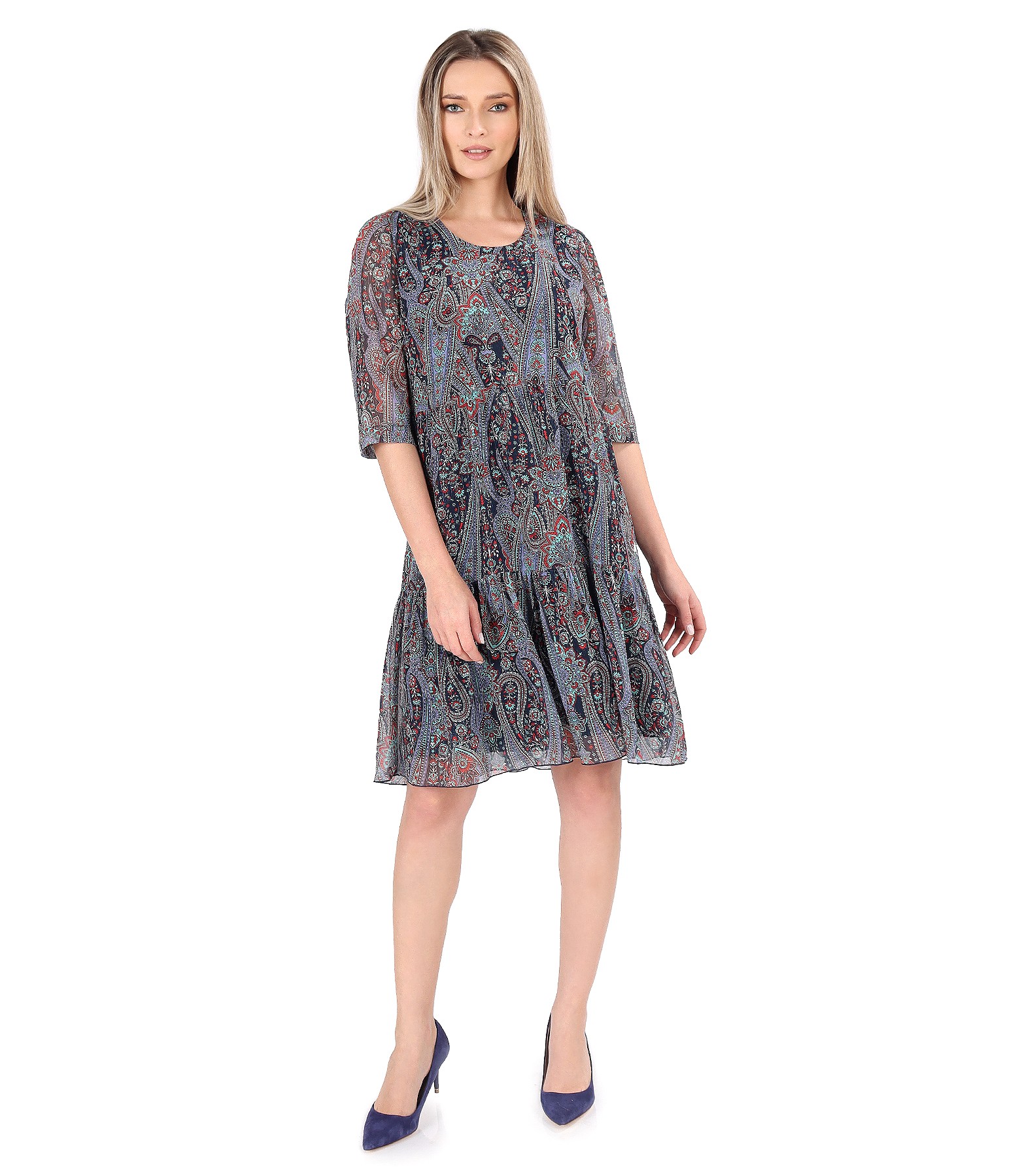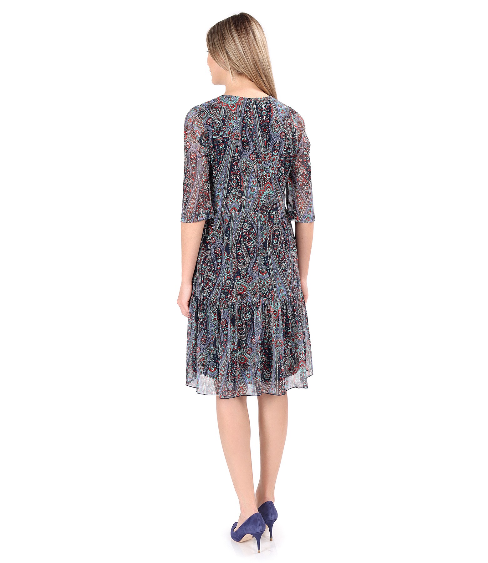 Rochie lejera cu volane din voal imprimat cu lire (Bleumarin), marimea