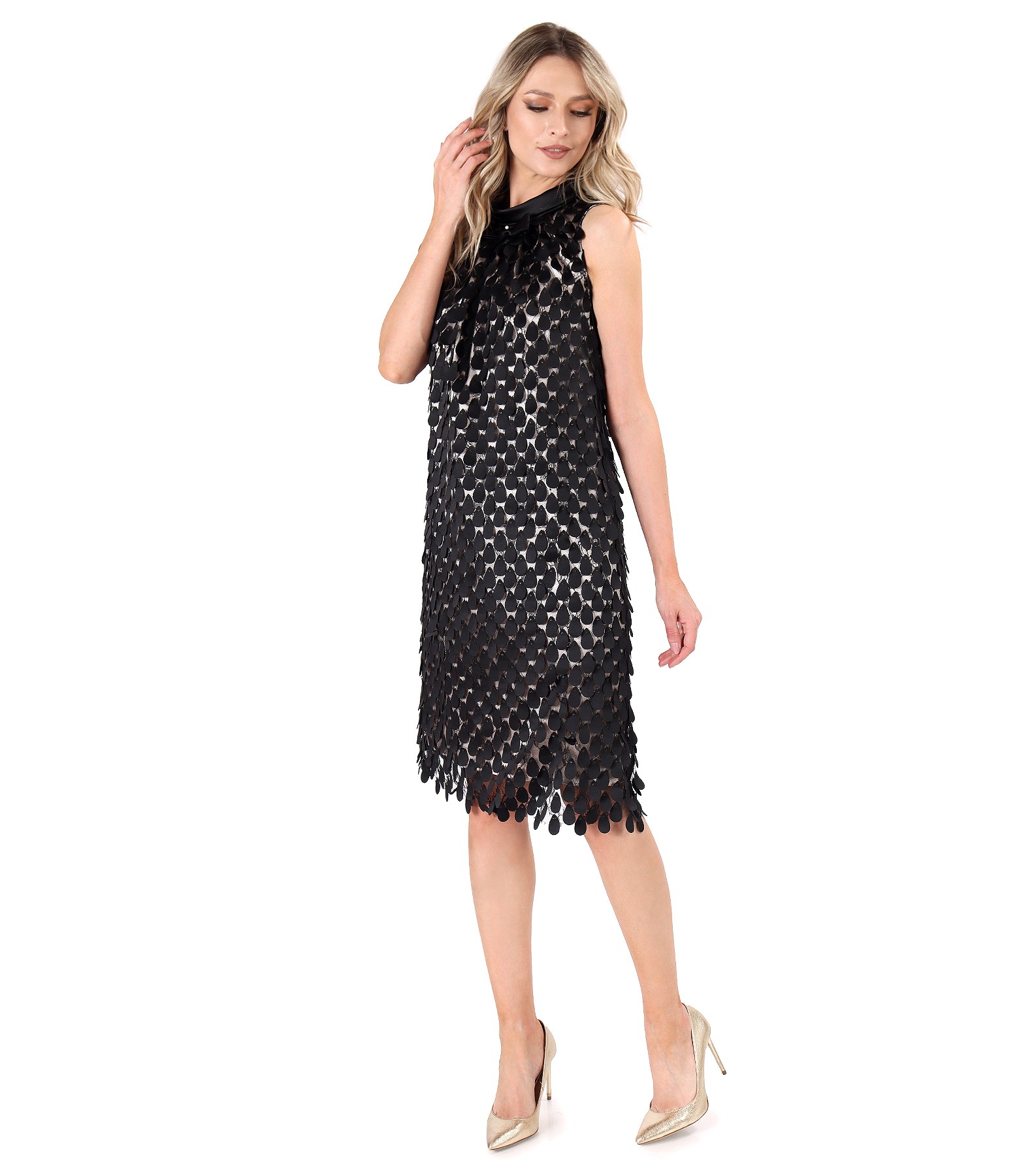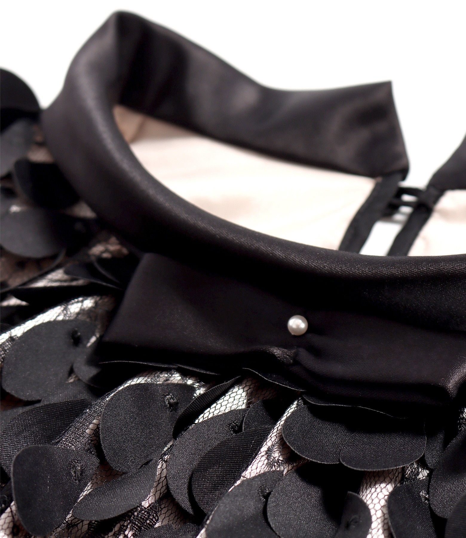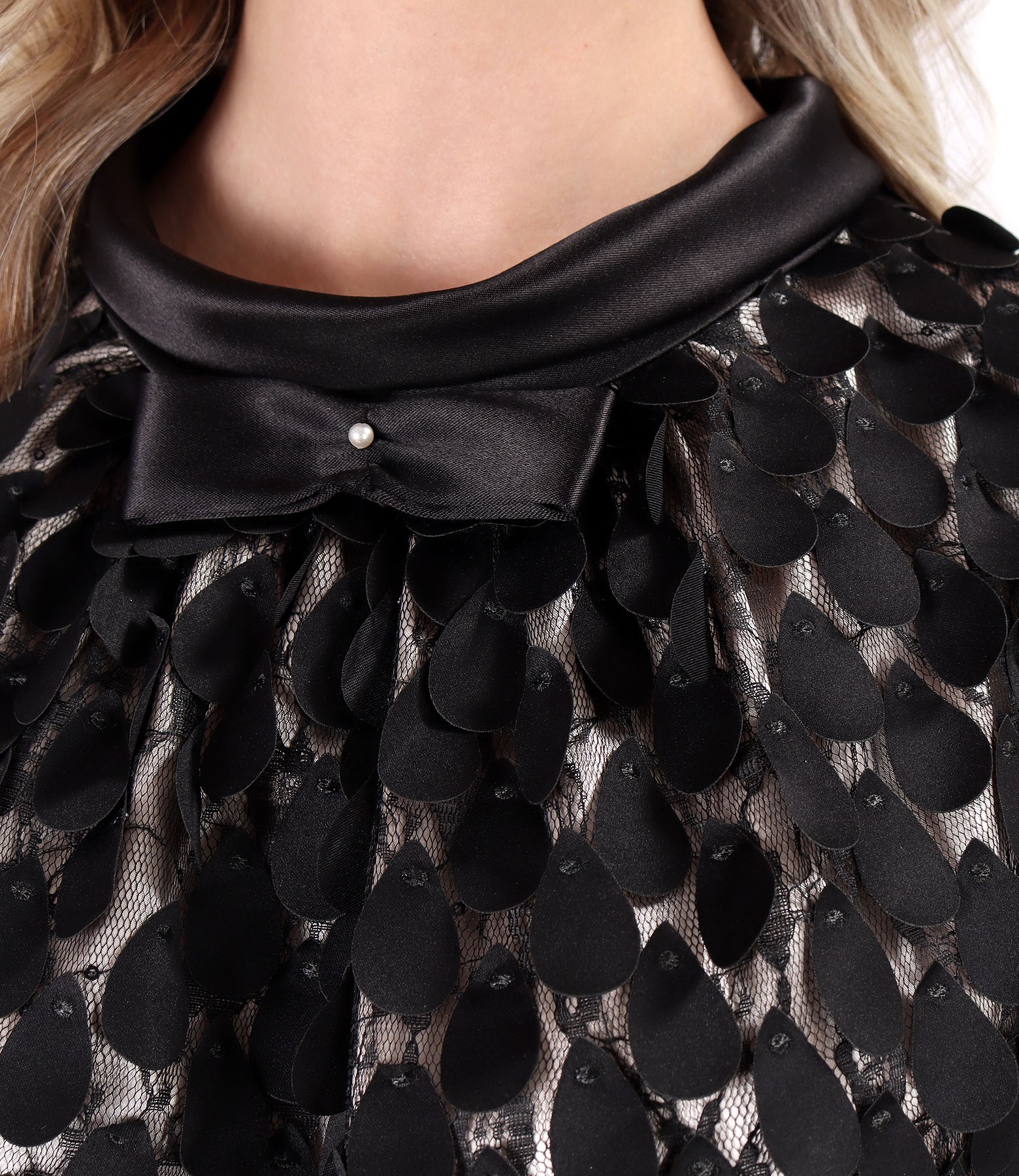 Rochie lejera de cocktail din dantela cu petale (Negru), marimea
