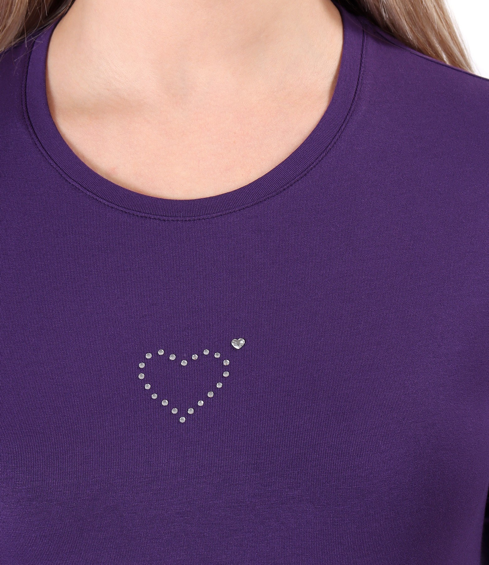 Rochie lejera din jerse elastic fin, necaptusita, cu decolteu rotund, maneci scurte si aplicatie decorativa in forma de inima pe fata.