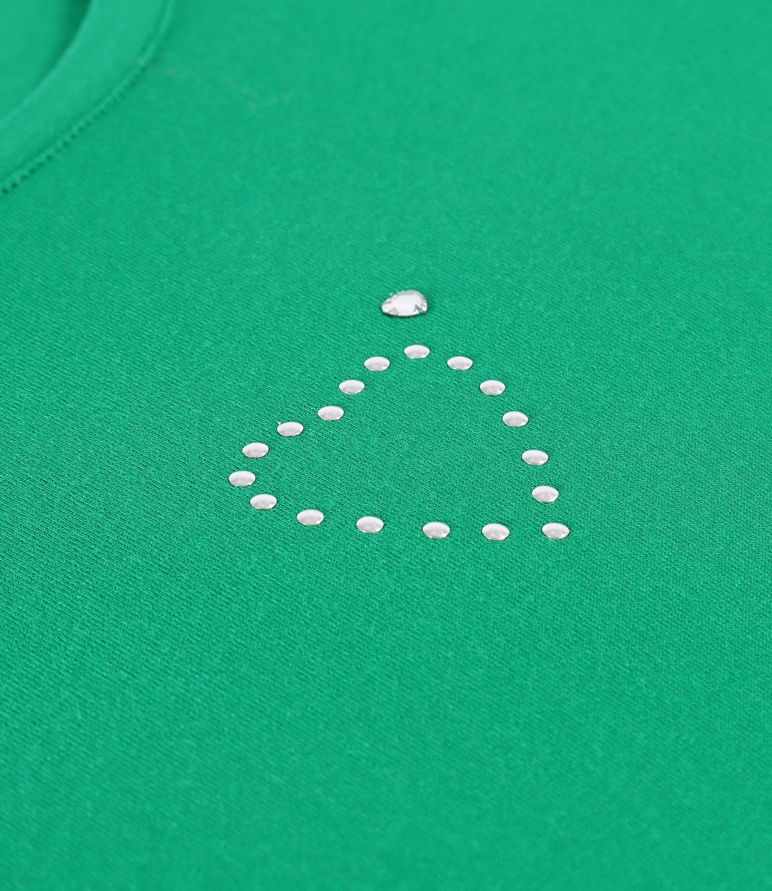 Rochie lejera din jerse elastic fin, necaptusita, cu decolteu rotund, maneci scurte si aplicatie decorativa in forma de inima pe fata.
