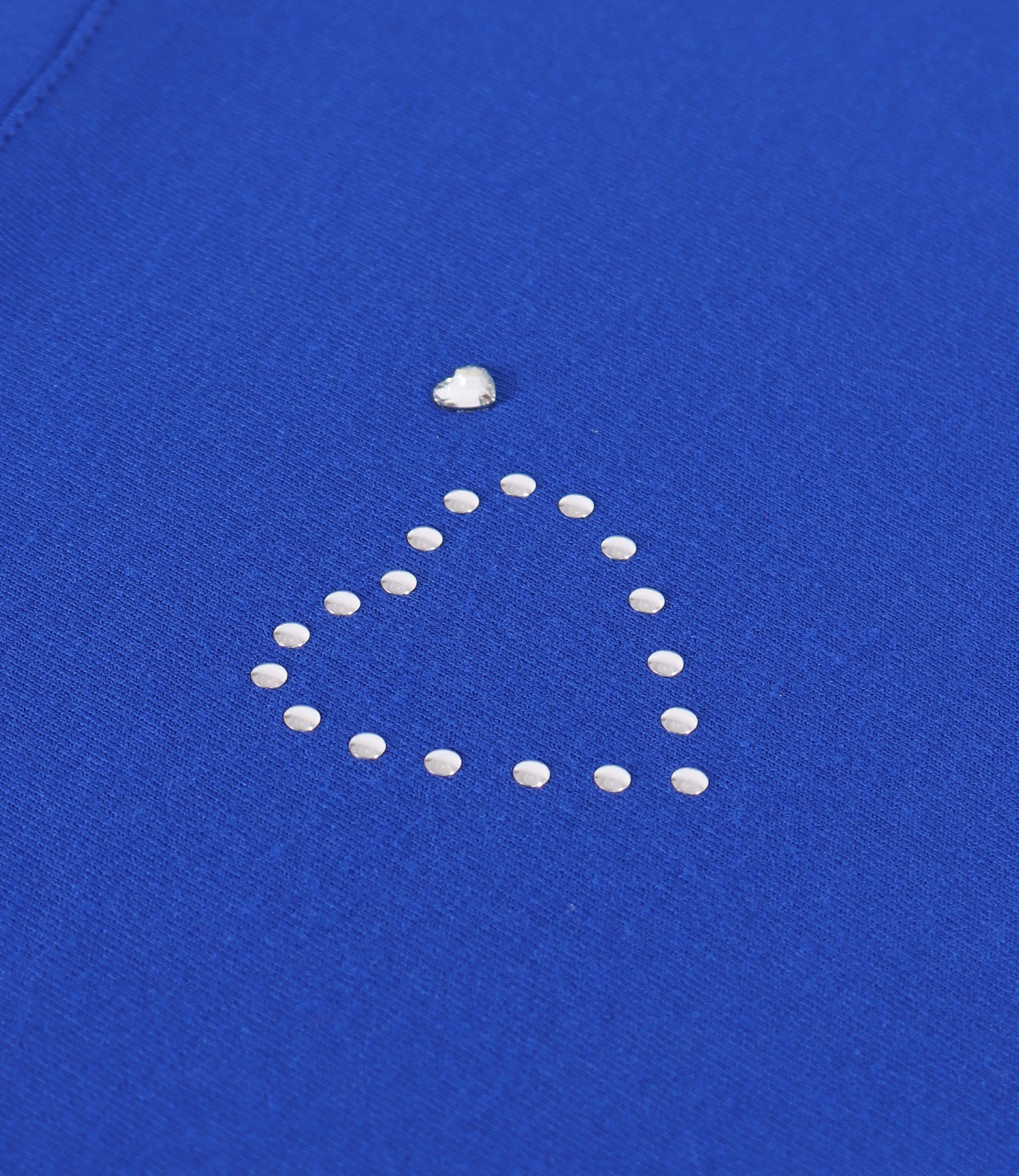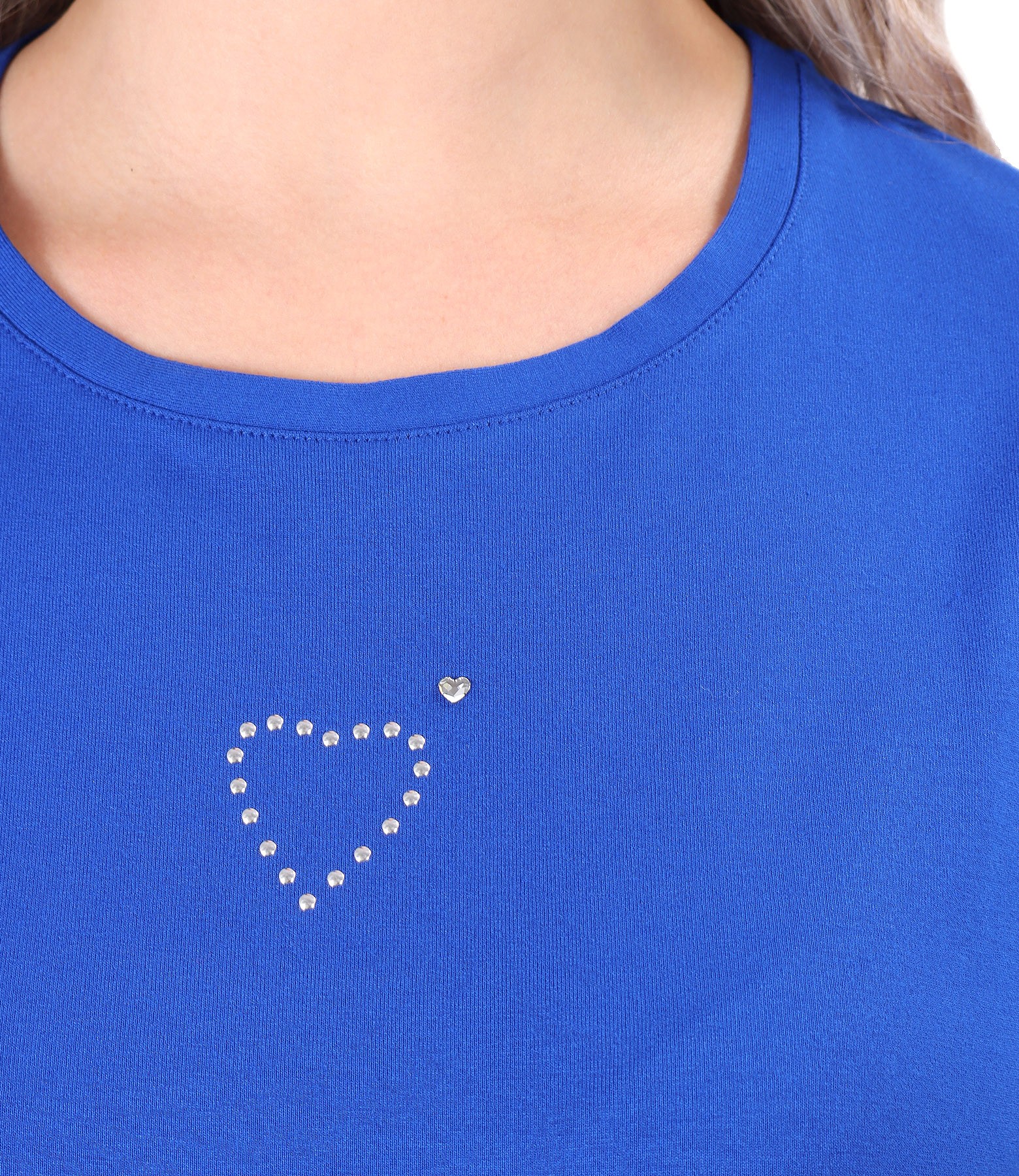 Rochie lejera din jerse elastic fin, necaptusita, cu decolteu rotund, maneci scurte si aplicatie decorativa in forma de inima pe fata.