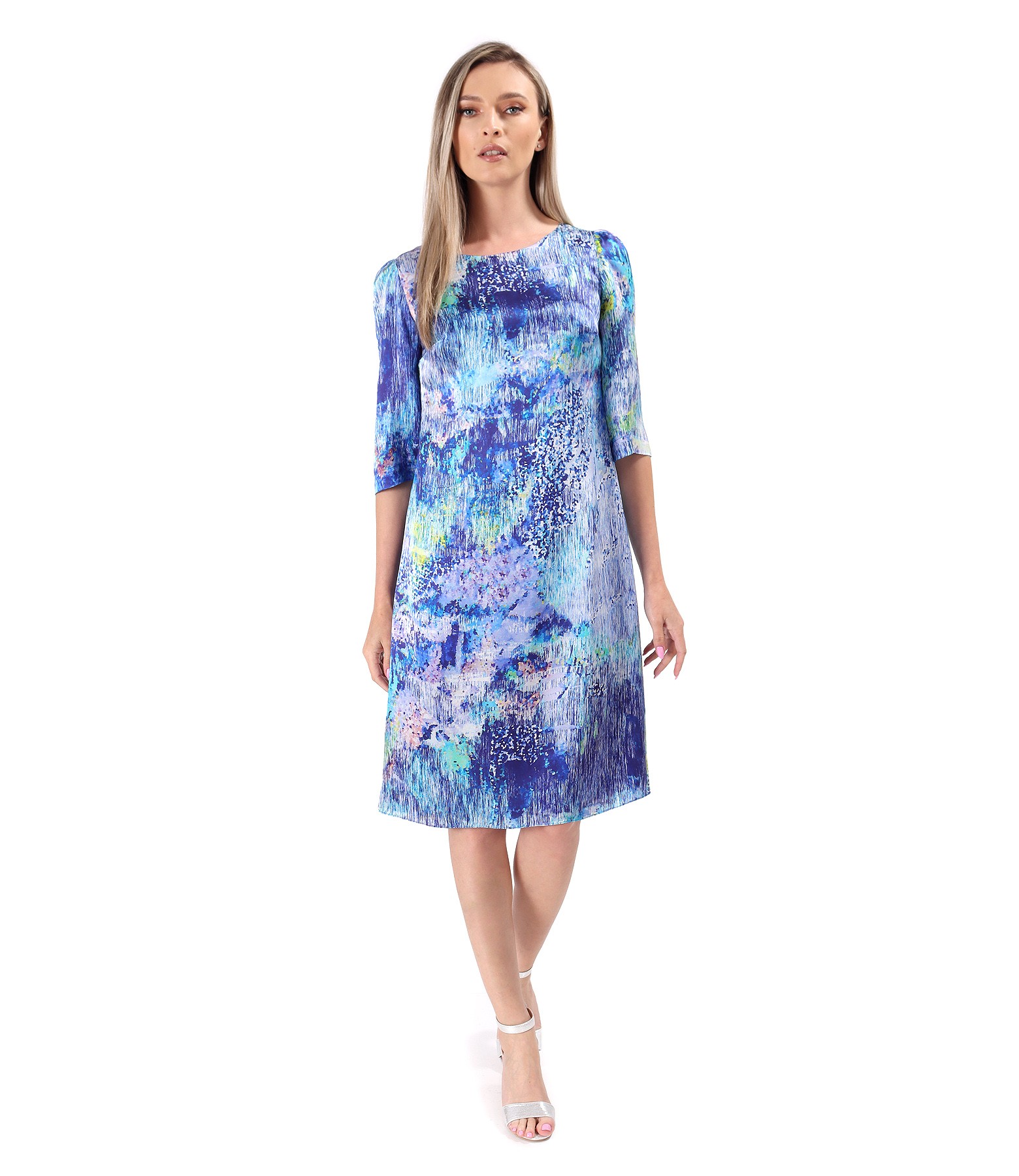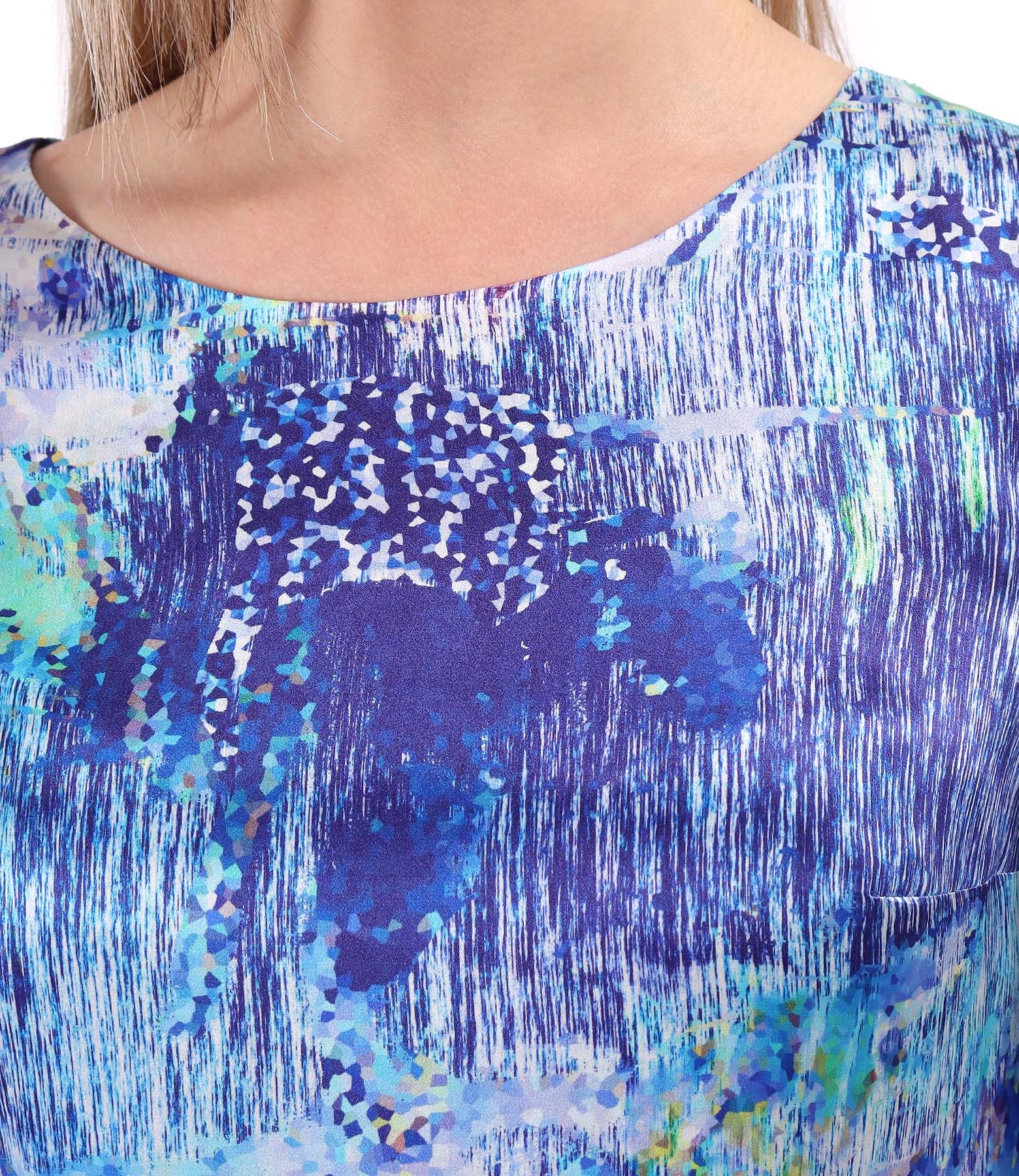 Rochie lejera din matase naturala imprimata digital (Albastru), marimea