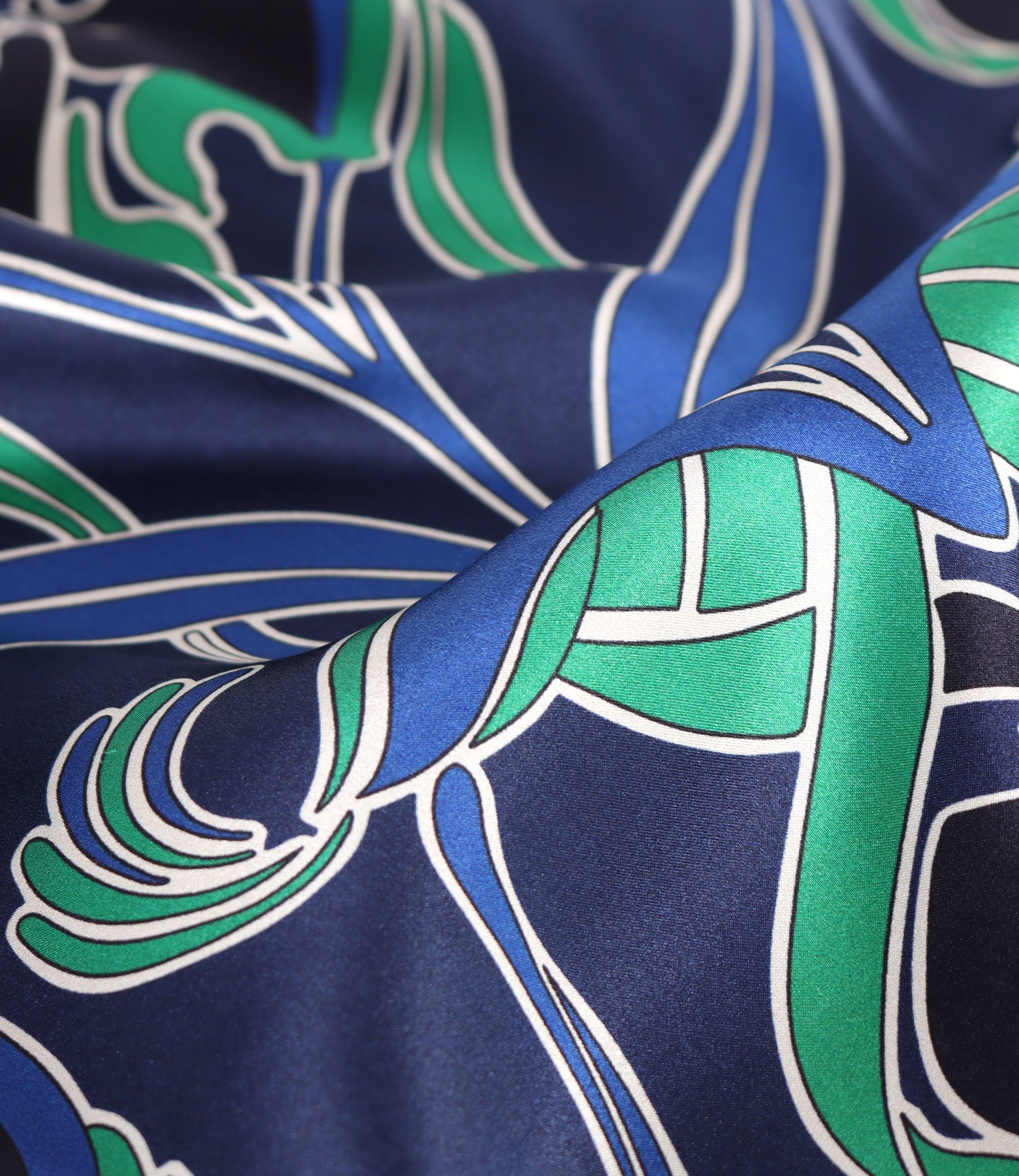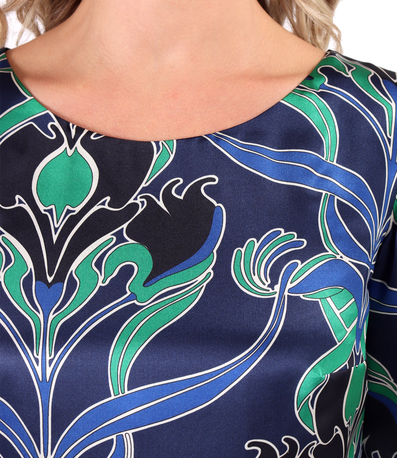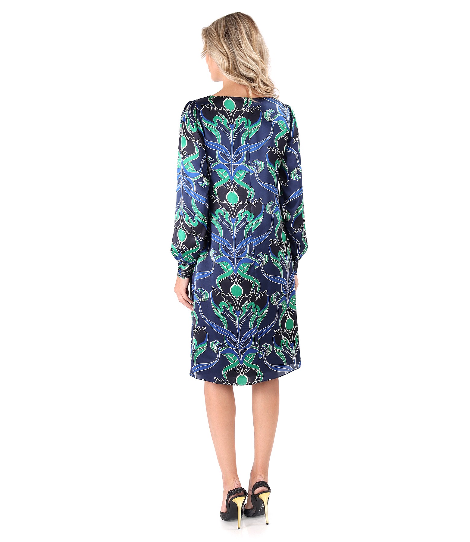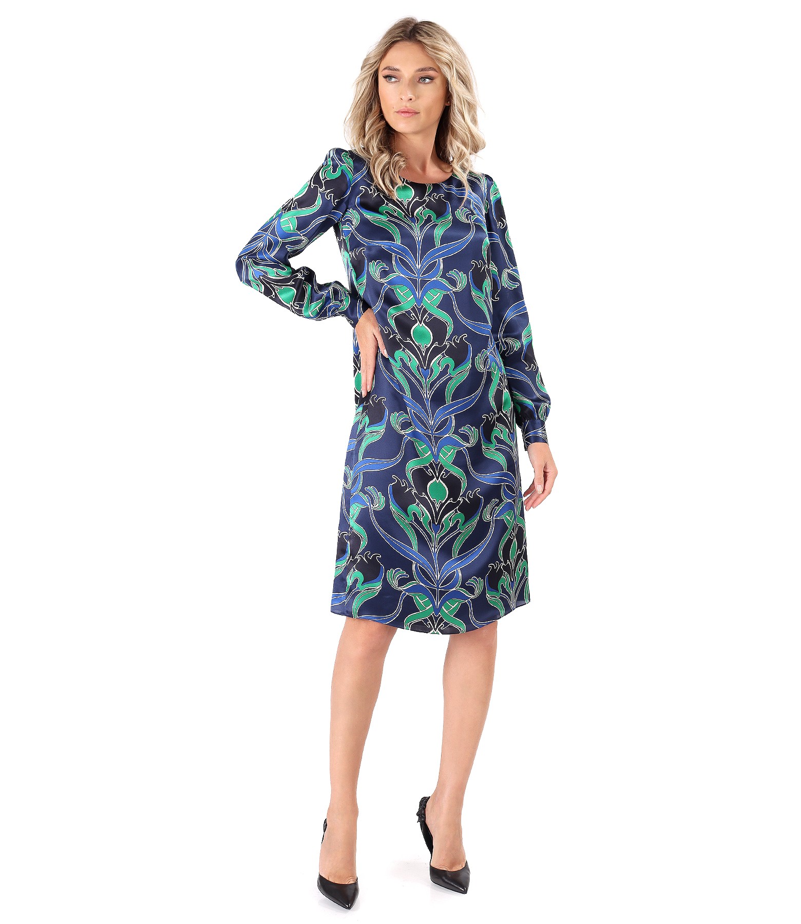 Rochie lejera din matase naturala imprimata digital (Bleumarin), marimea