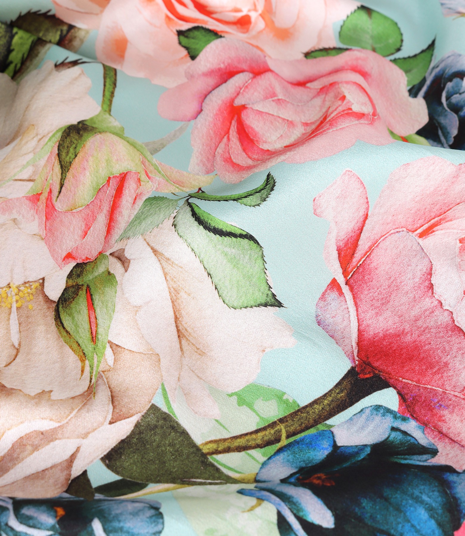 Rochie lejera din matase naturala plina satinata cu motive florale