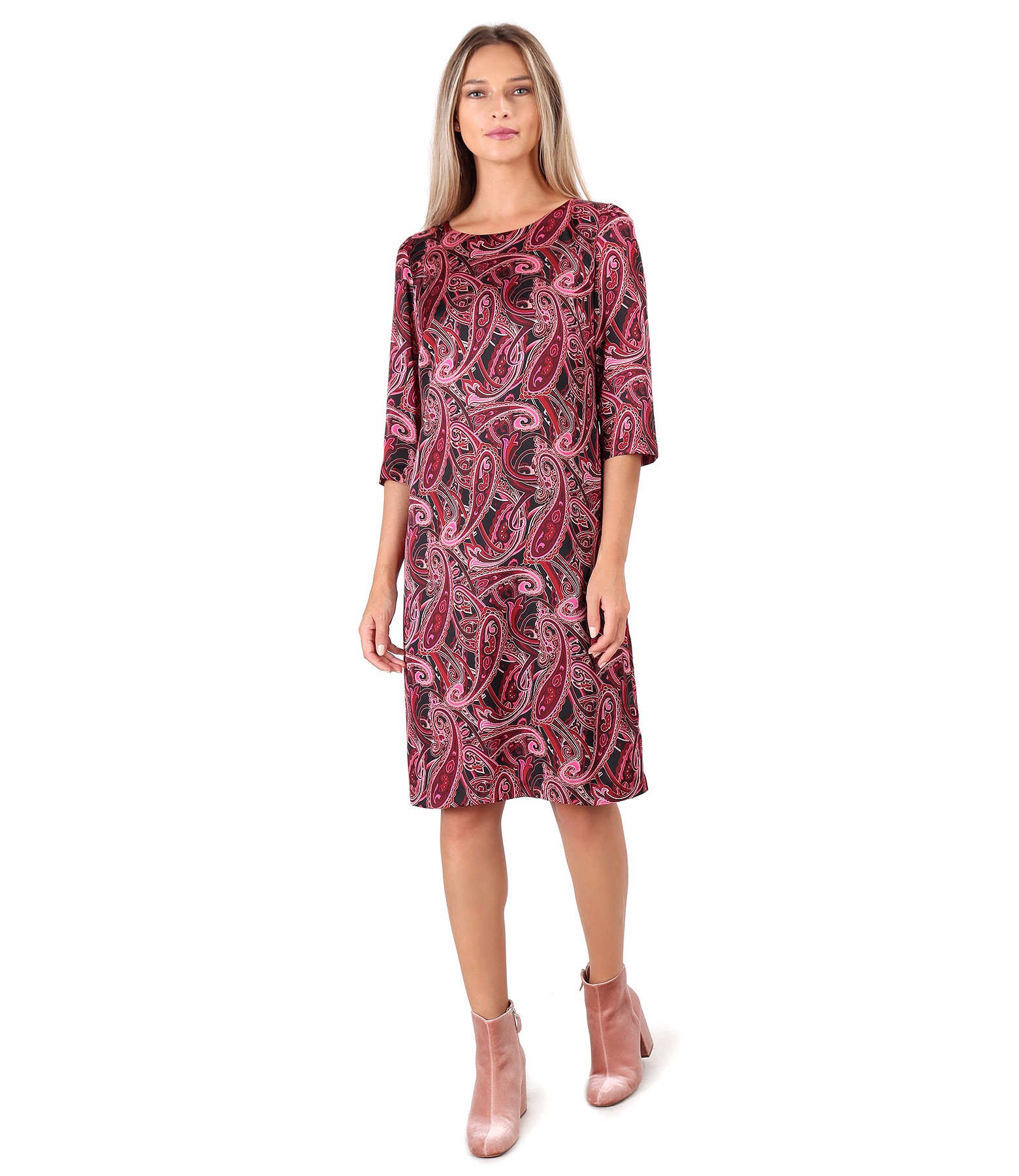 Rochie lejera din saten imprimat cu motive paisley (Ciclamen), marimea