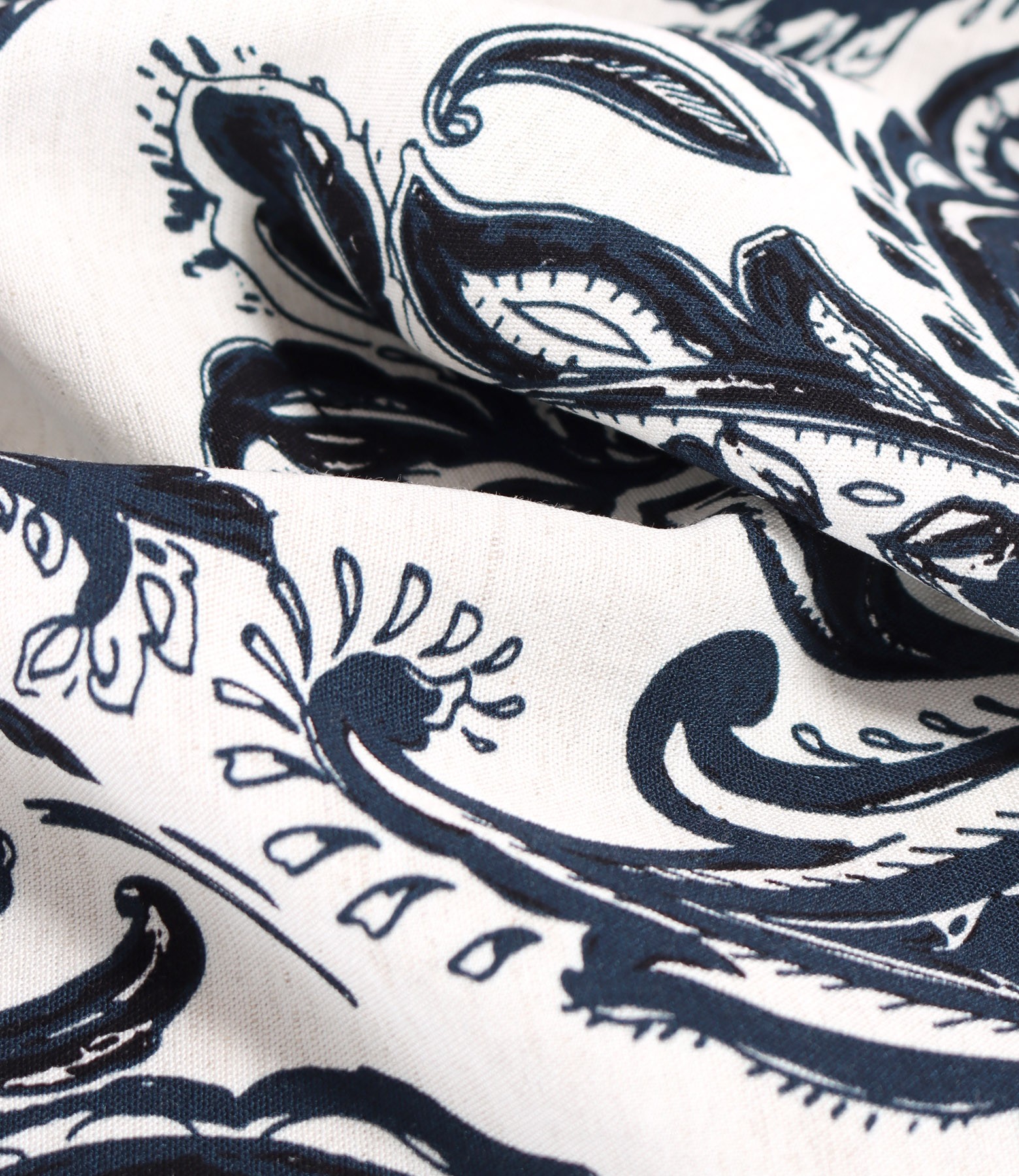 Rochie lejera din viscoza cu in imprimat cu motive paisley, cu maneci scurte, decolteu rotund si buzunare laterale. Se inchide cu fermoar ascuns pe mijloc spate. Imprimeul variaza per produs.