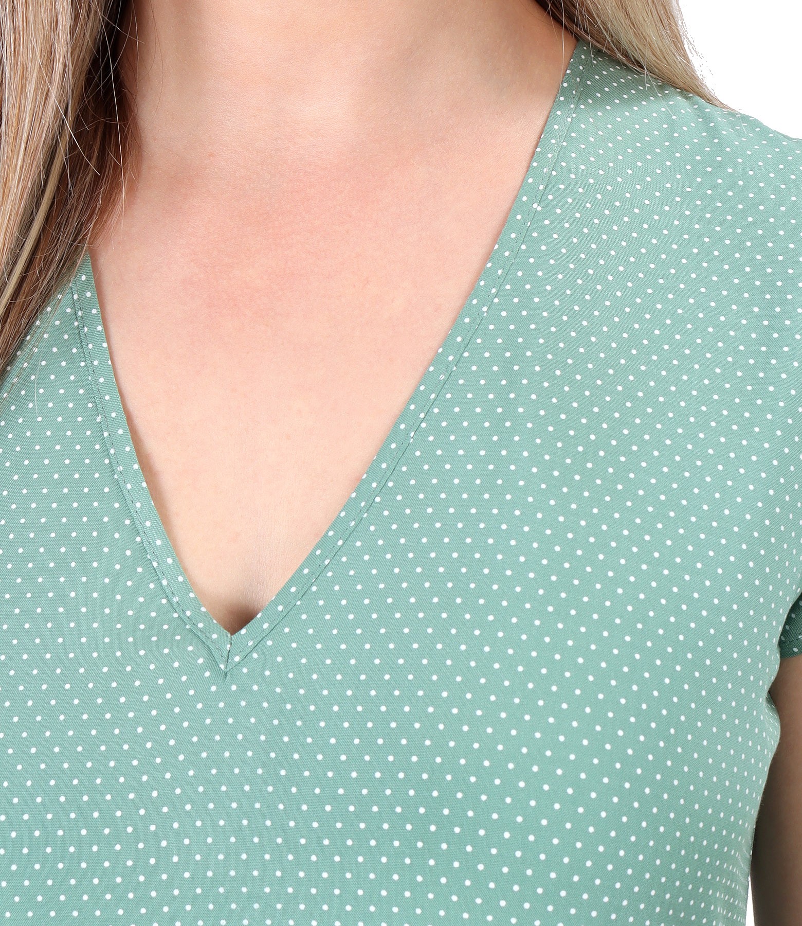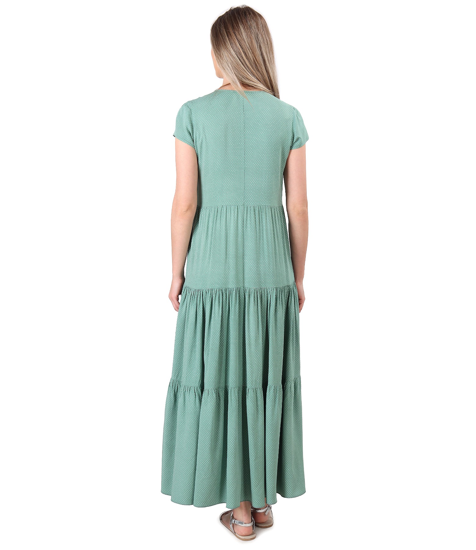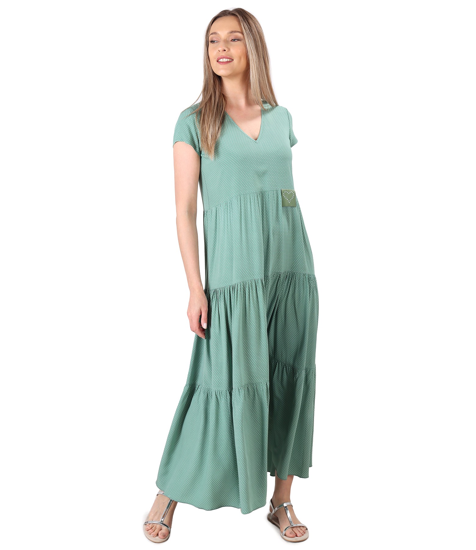 Rochie lunga cu volane din viscoza imprimata cu picouri (Verde Menta), marimea