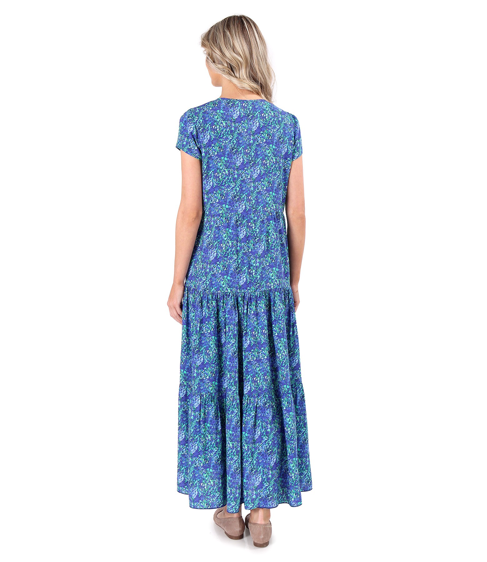 Rochie lunga cu volane din viscoza imprimata (Albastru), marimea