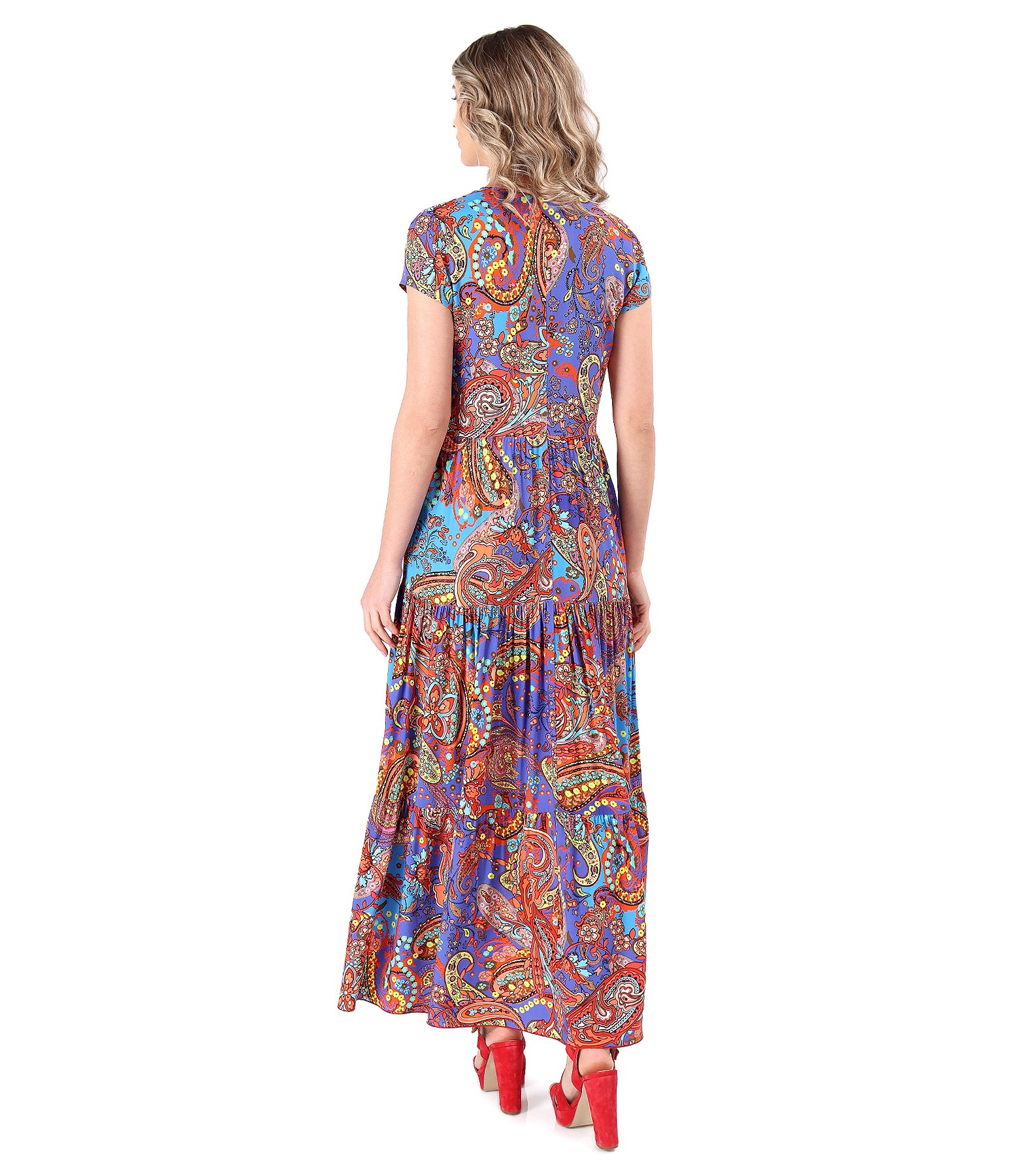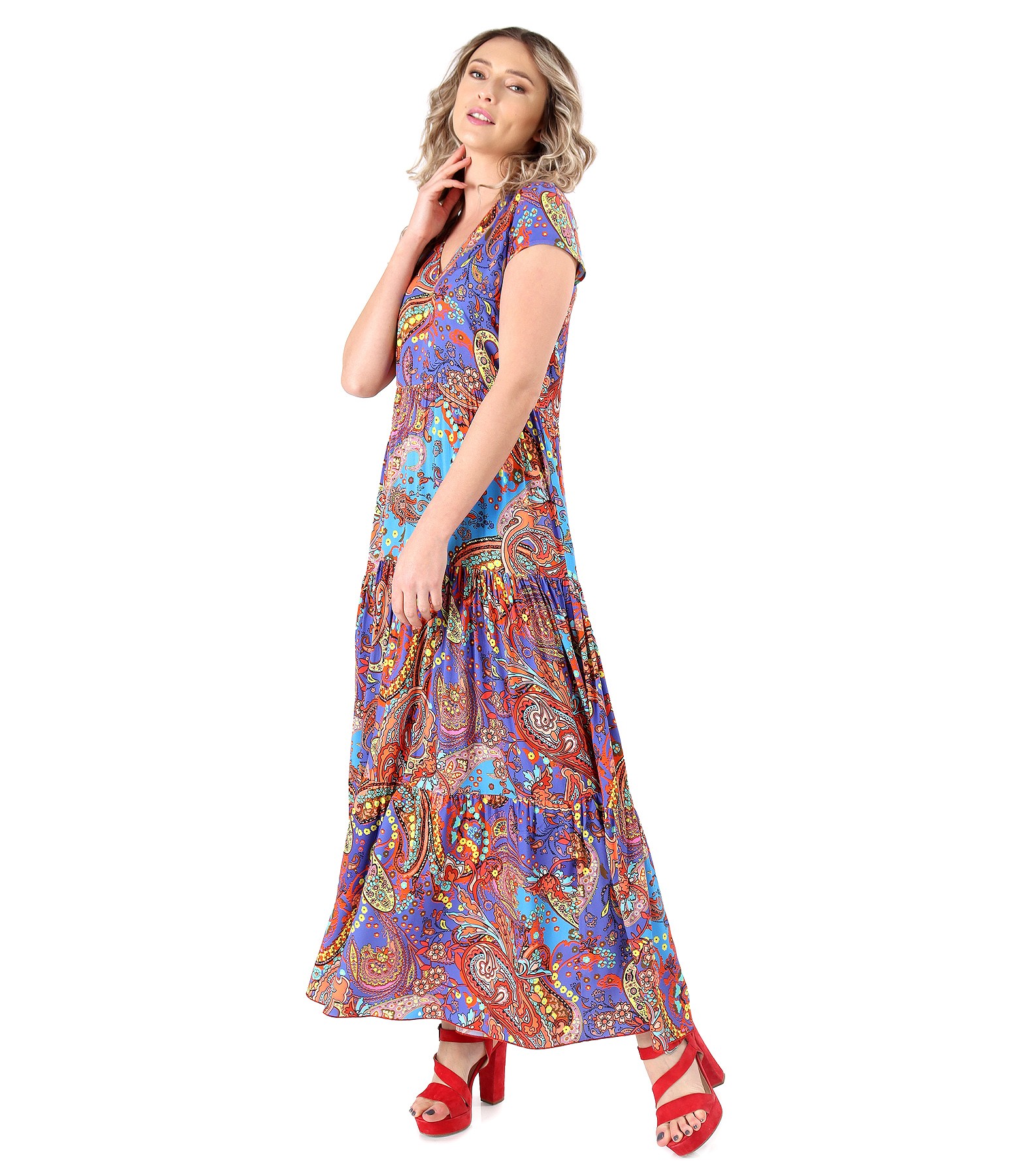 Rochie lunga cu volane din viscoza imprimata