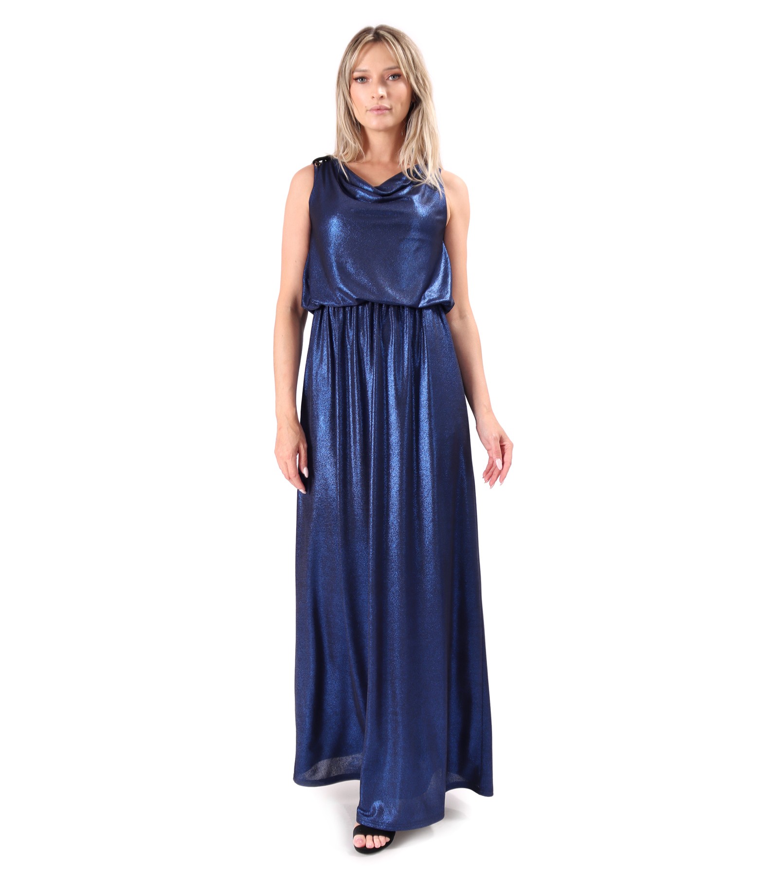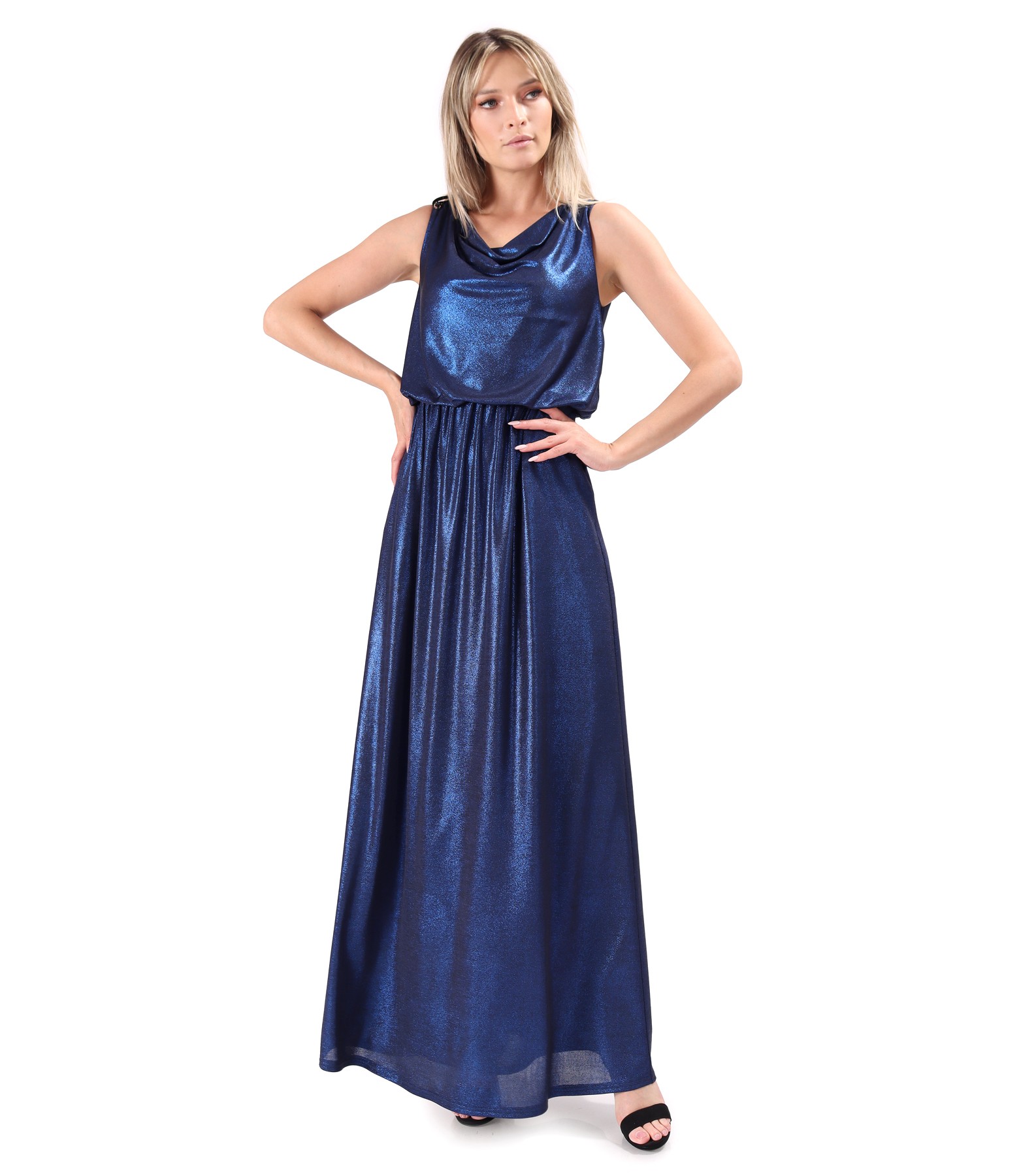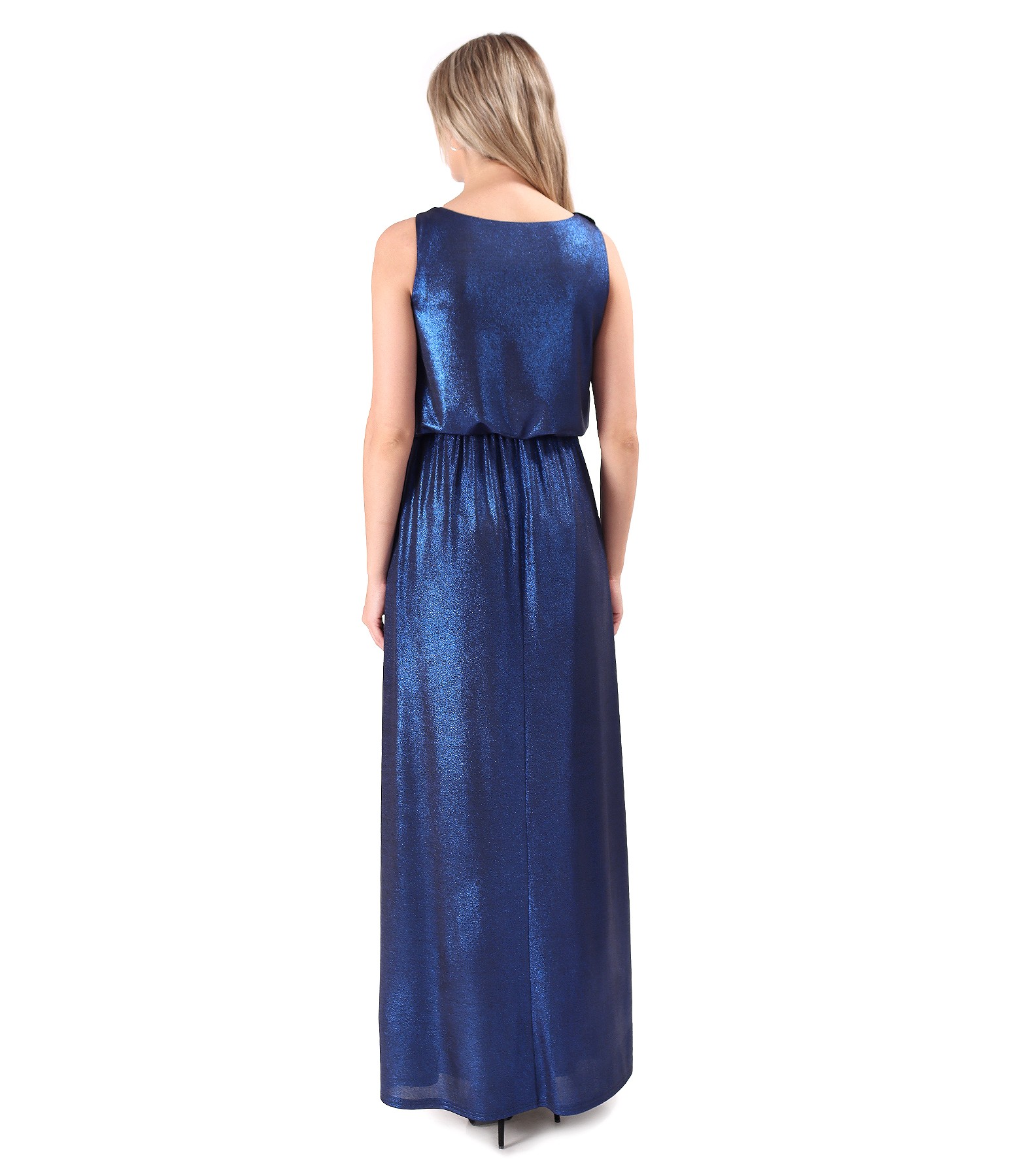 Rochie lunga de ocazie din jerse elastic cu efect lucios (Albastru), marimea
