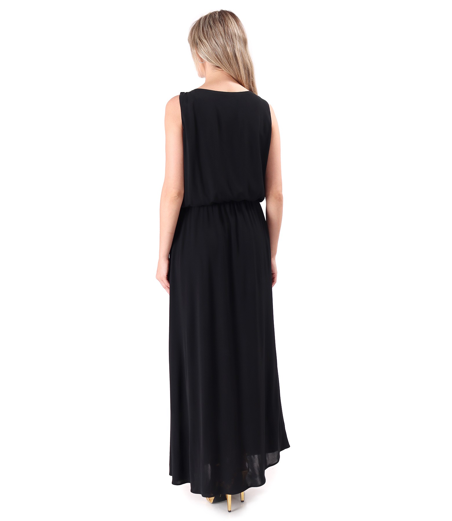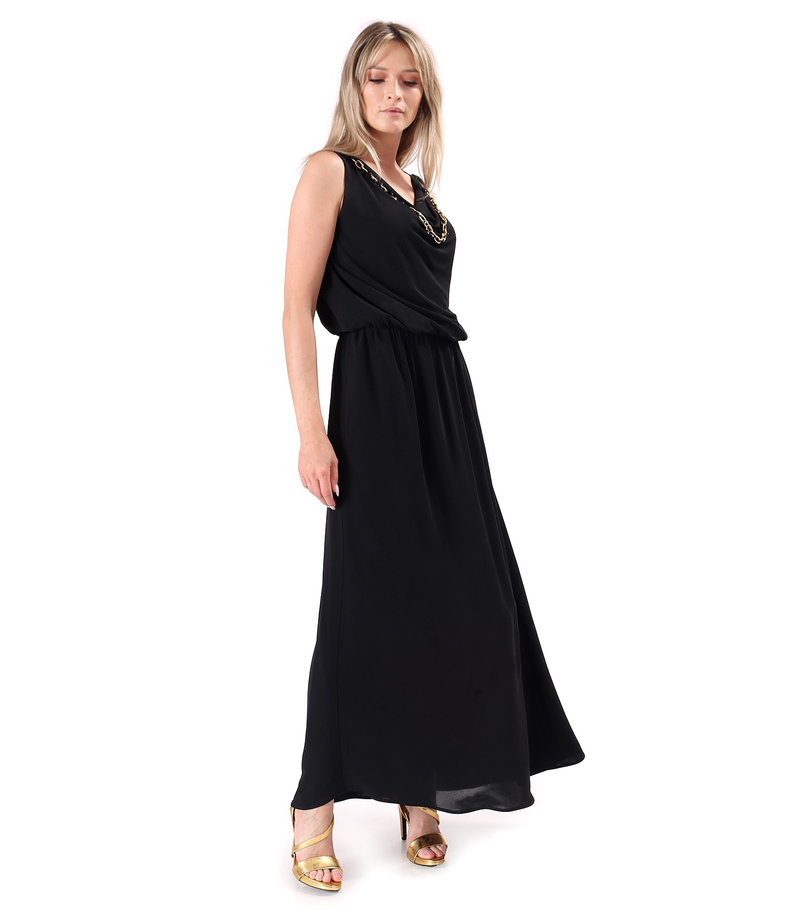 Rochie lunga de ocazie din viscoza cu lant la decolteu (Negru), marimea