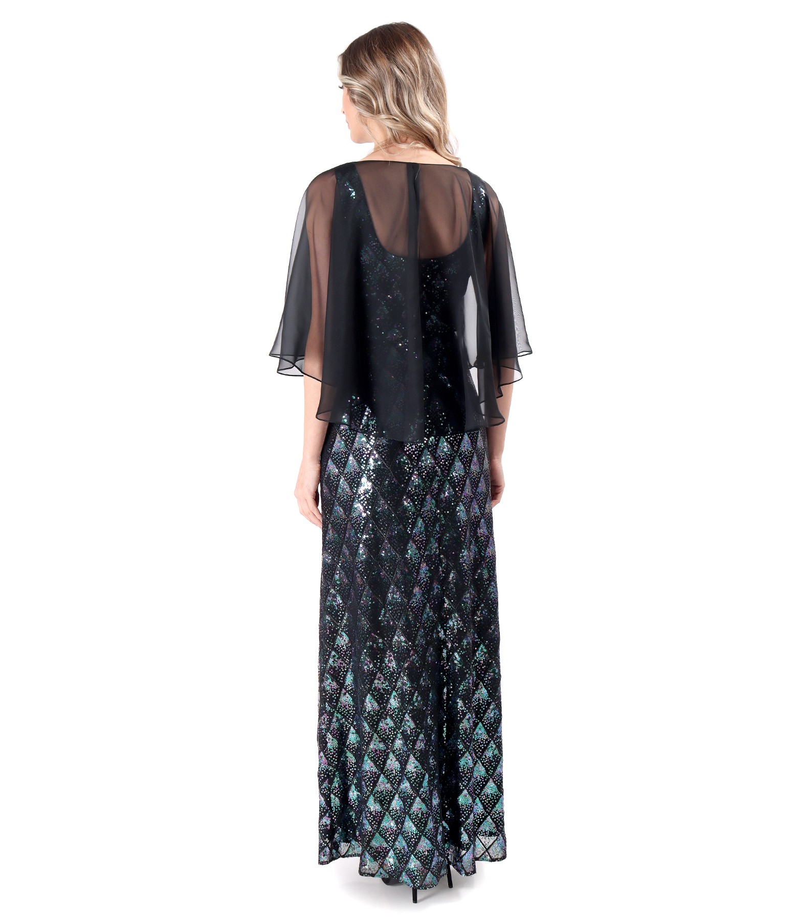Rochie lunga de seara din paiete cu capa din voal (Negru), marimea