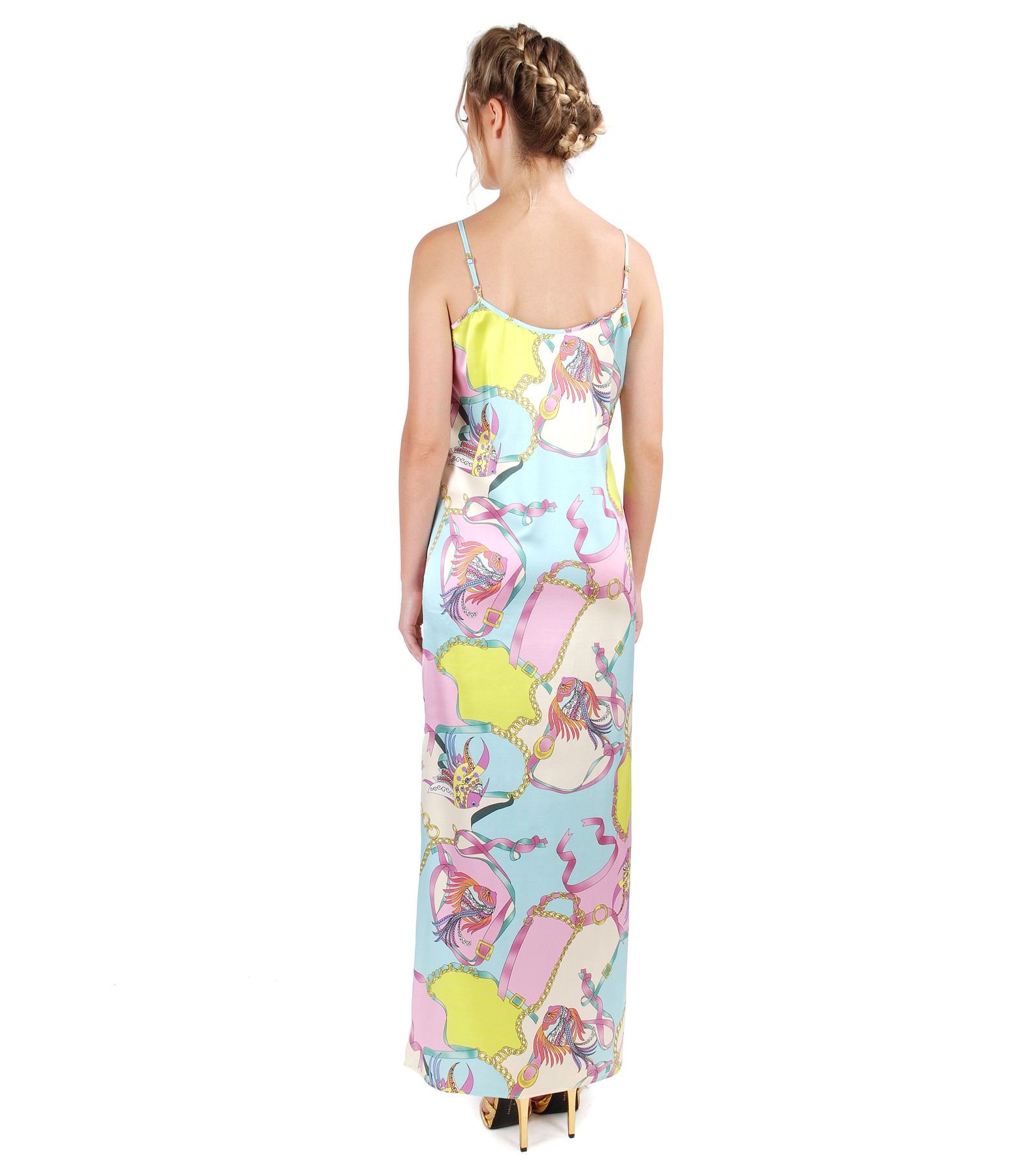 Rochie lunga din matase elastica imprimata, cu bretele ajustabile si cu slituri laterale. Colectie limitata.