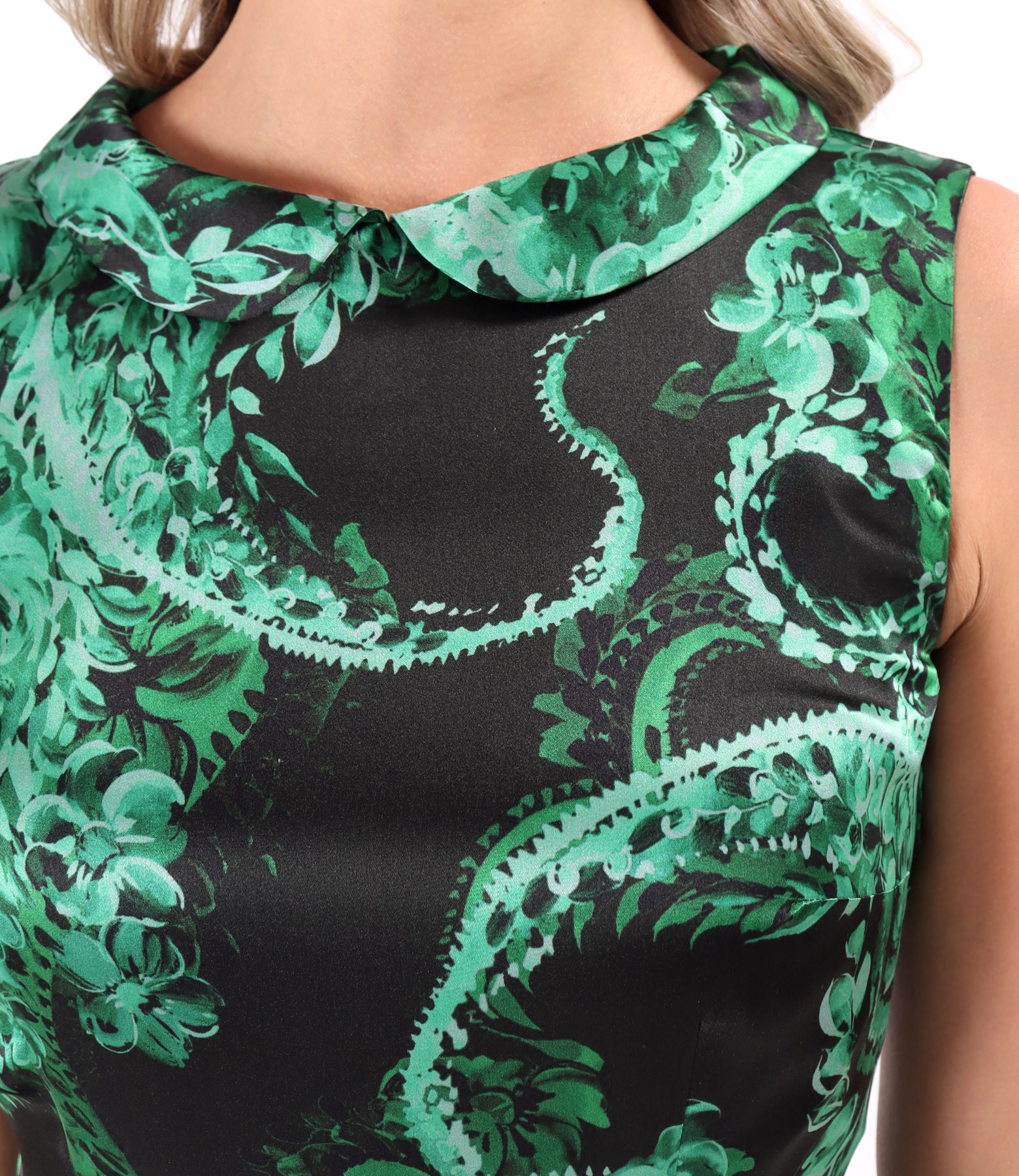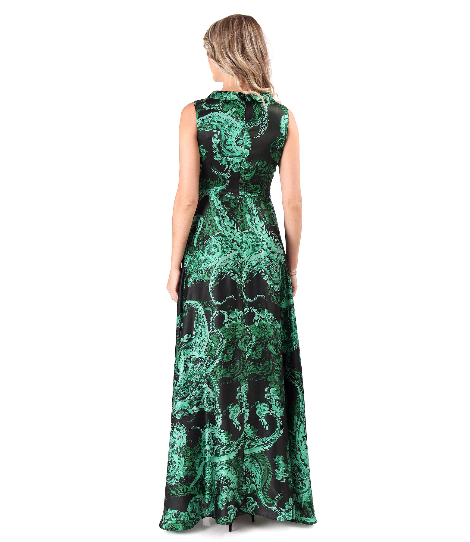 Rochie lunga din matase naturala imprimata cu motive paisley (Verde), marimea