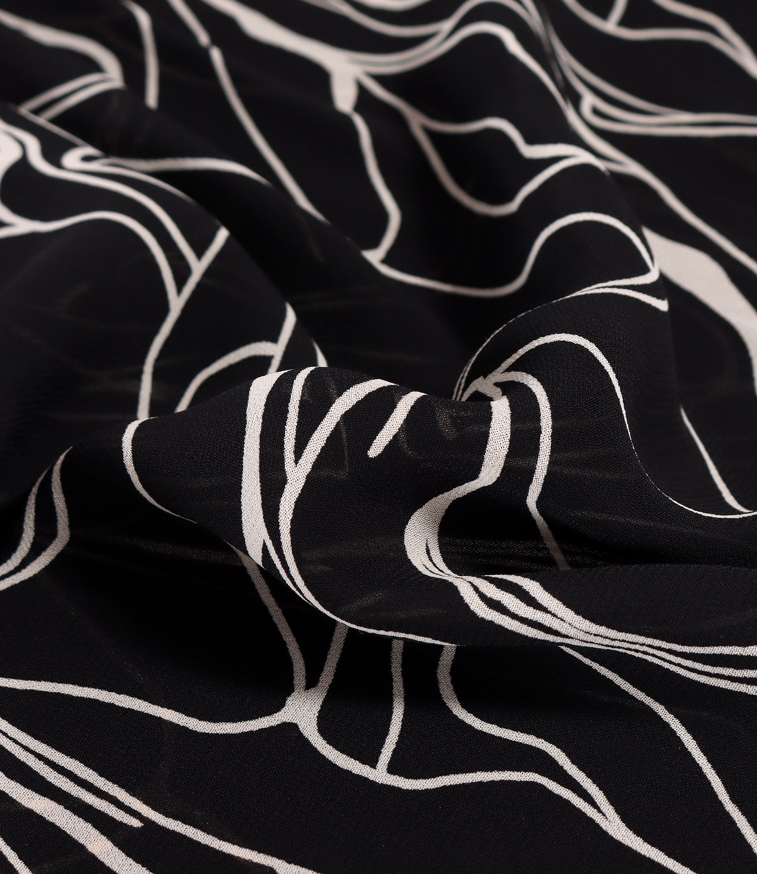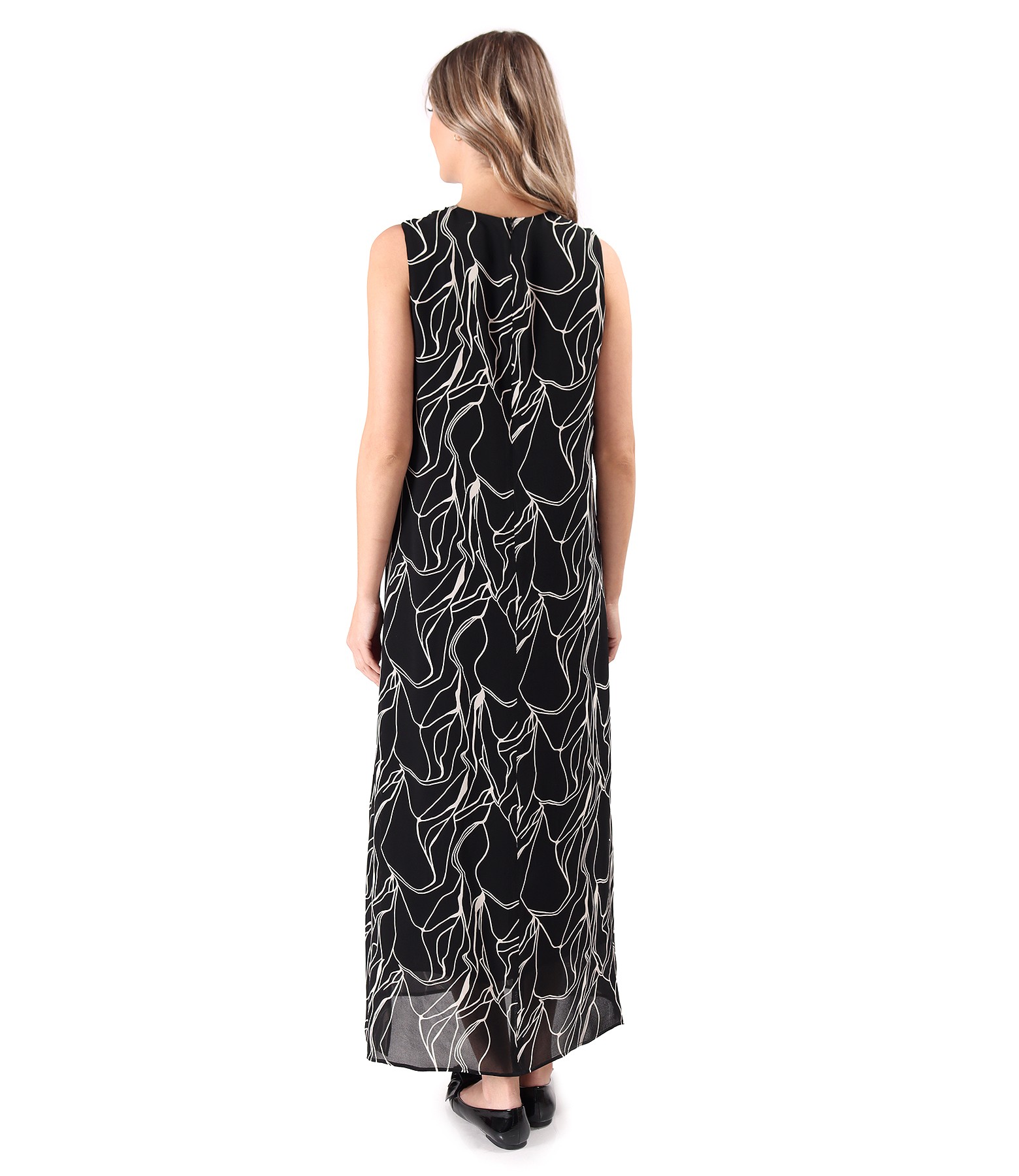 Rochie lunga din viscoza imprimata cu motive geometrice cu slituri laterale (Negru), marimea