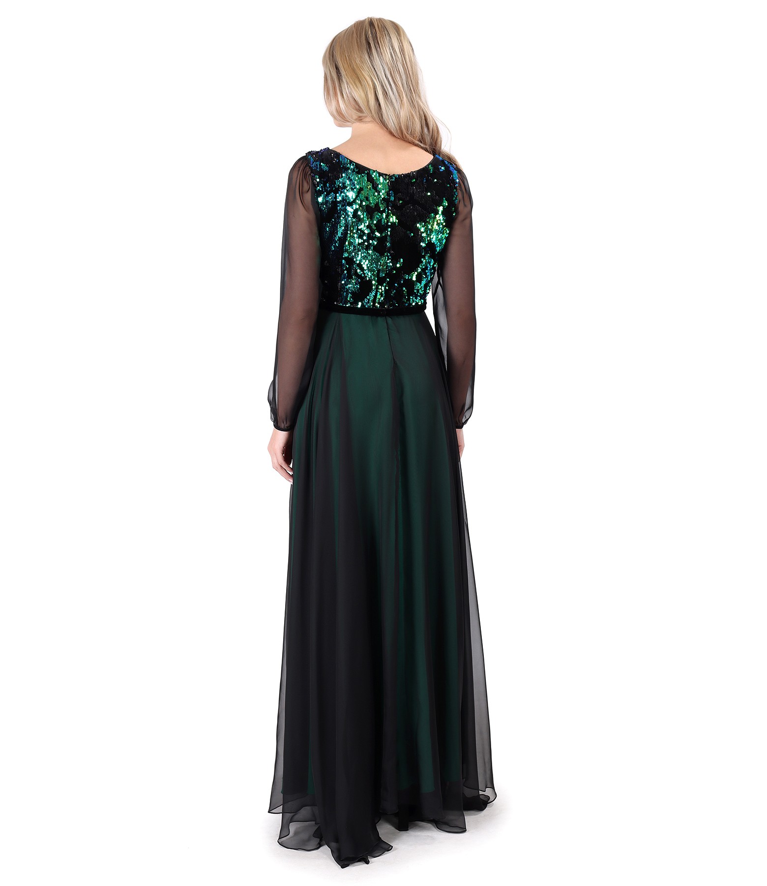 Rochie lunga din voal cu corsaj din paiete reversibile (Verde), marimea