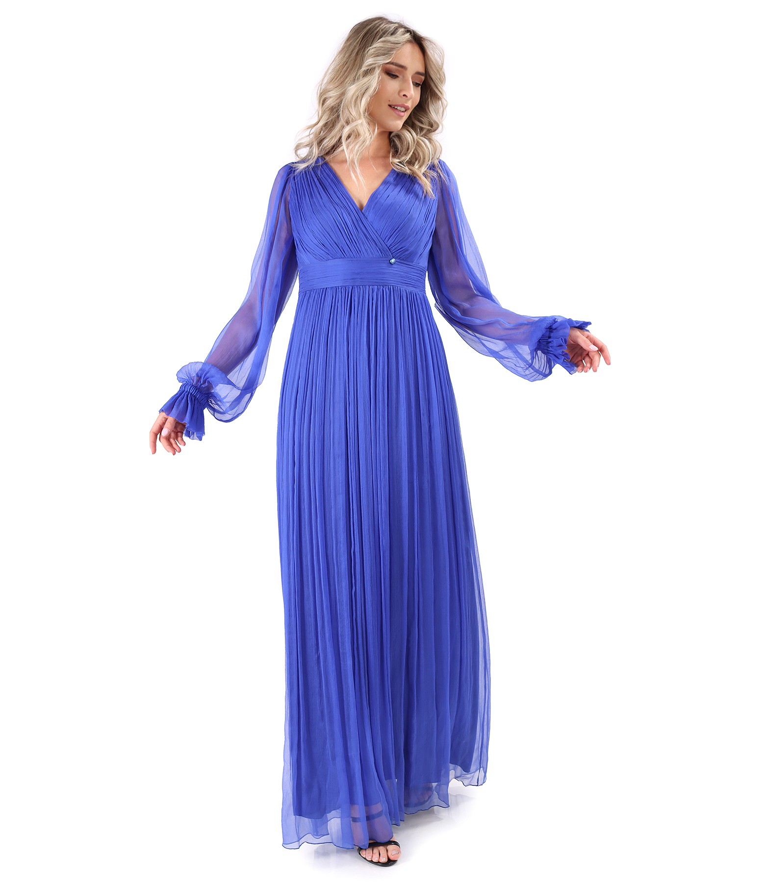 Rochie lunga din voal de matase naturala (Albastru royal), marimea