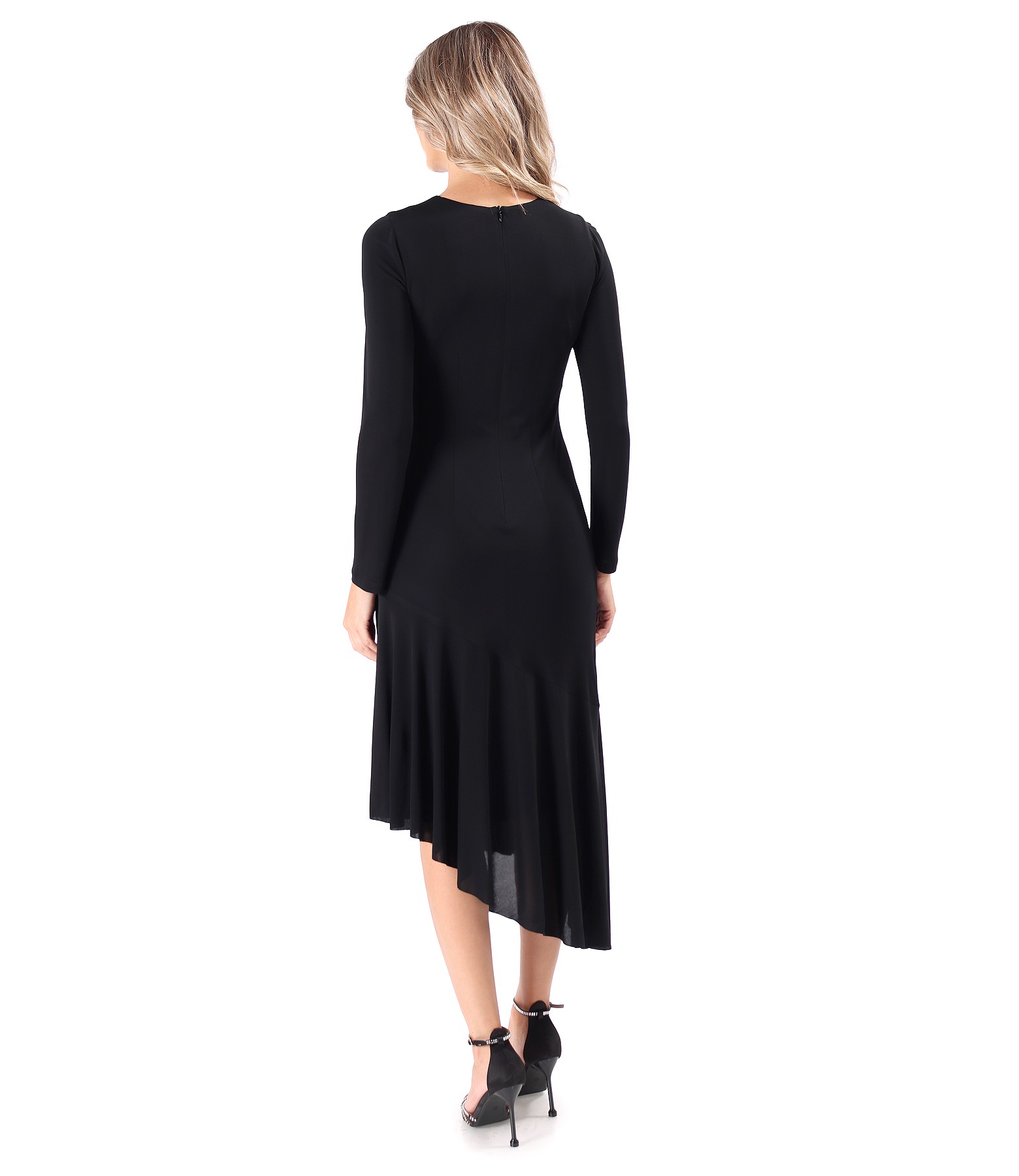 Rochie midi cu volan asimetric din viscoza (Negru), marimea