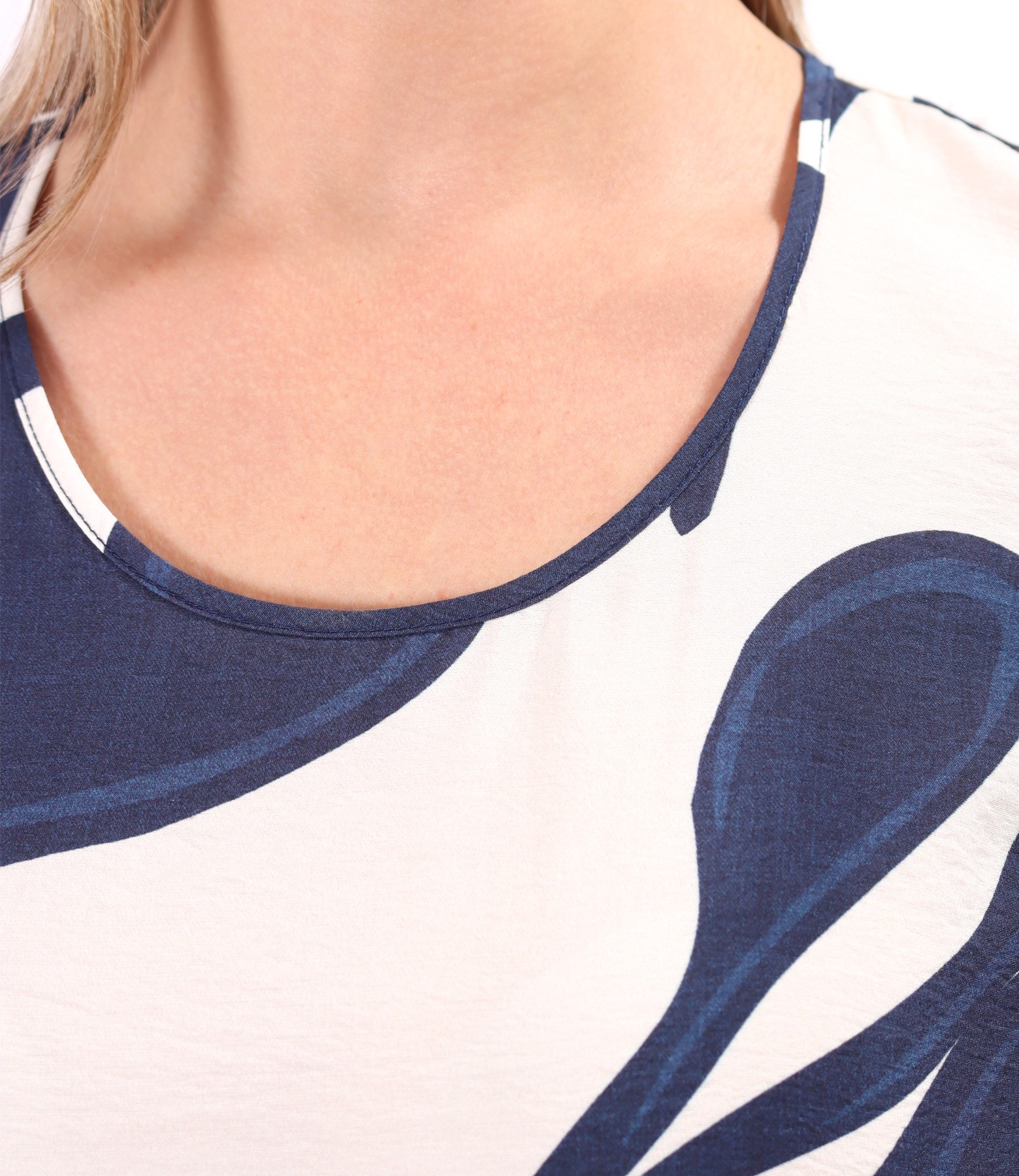 Rochie midi cu volane din viscoza imprimata cu motive florale, cu maneci scurte, buzunare laterale si decolteu rotund.