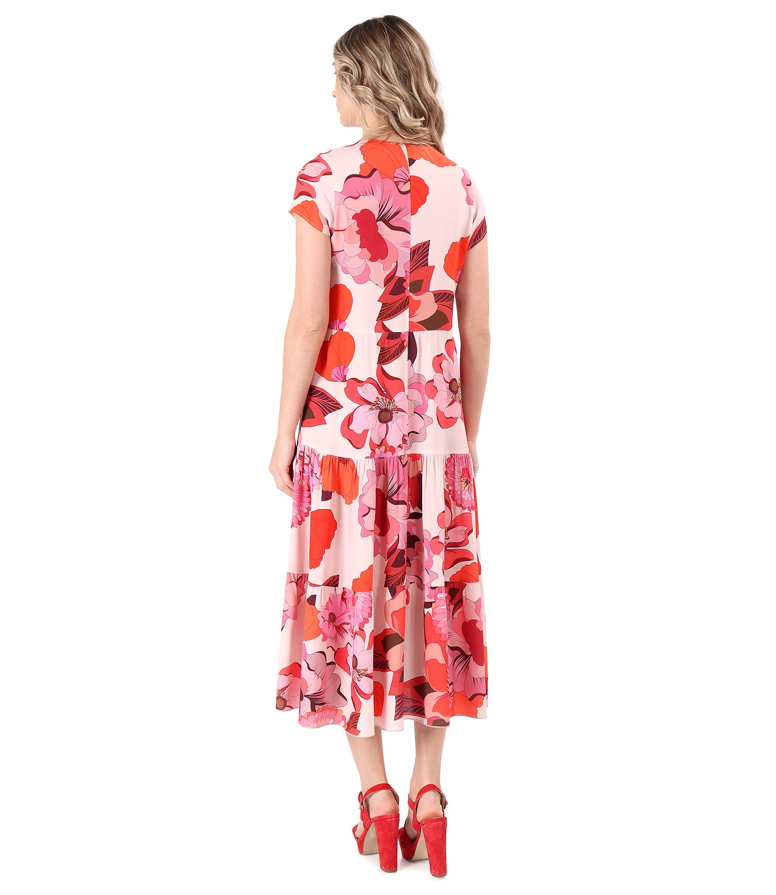 Rochie midi cu volane din viscoza imprimata cu motive florale