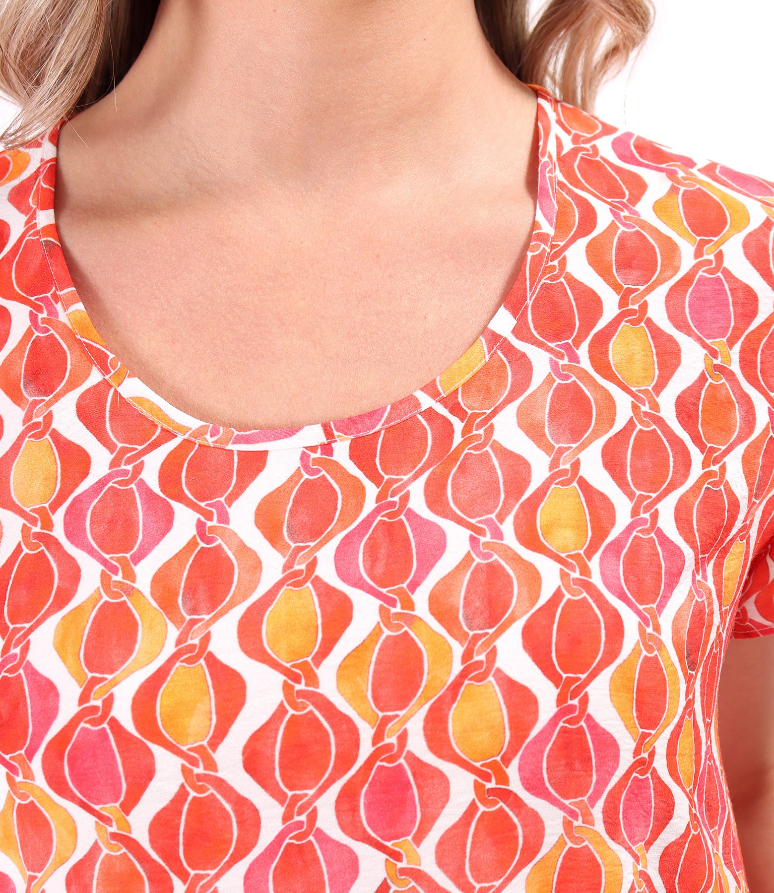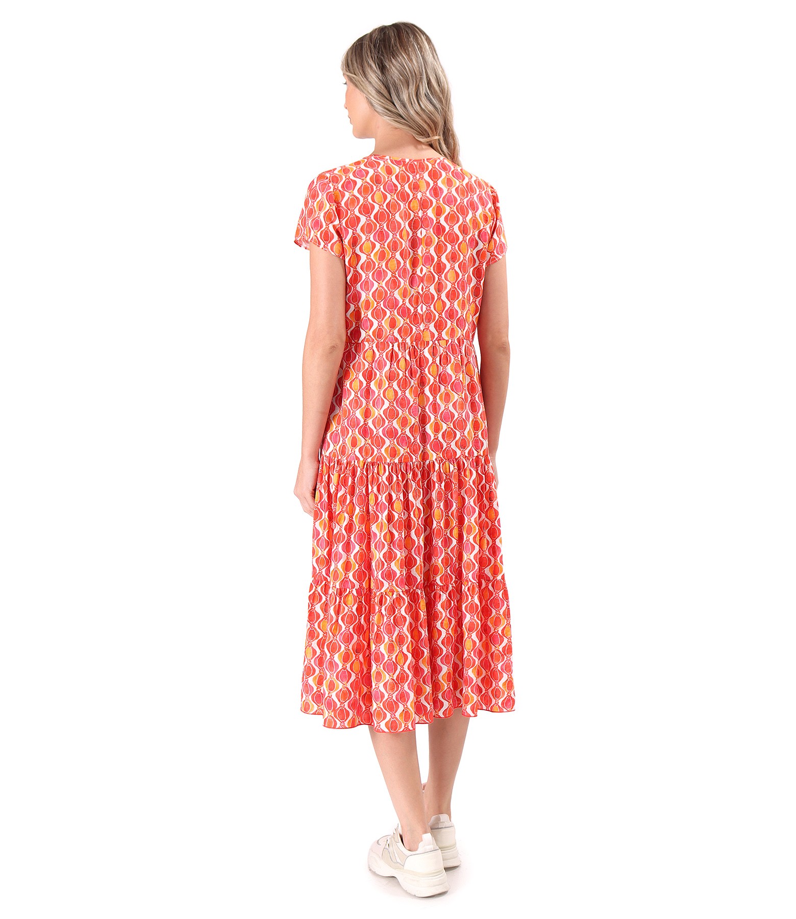 Rochie midi cu volane din viscoza imprimata cu motive geometrice (Rosu corai), marimea