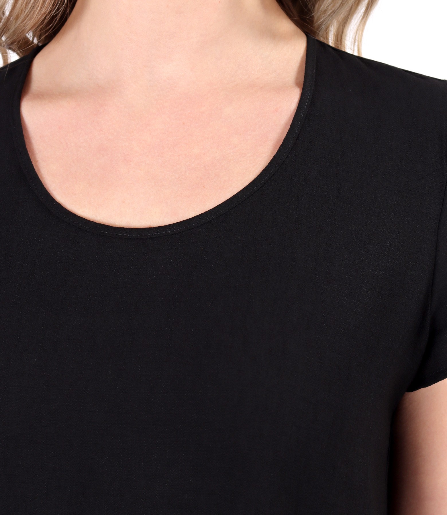 Rochie midi cu volane din viscoza usor creponata (Negru), marimea