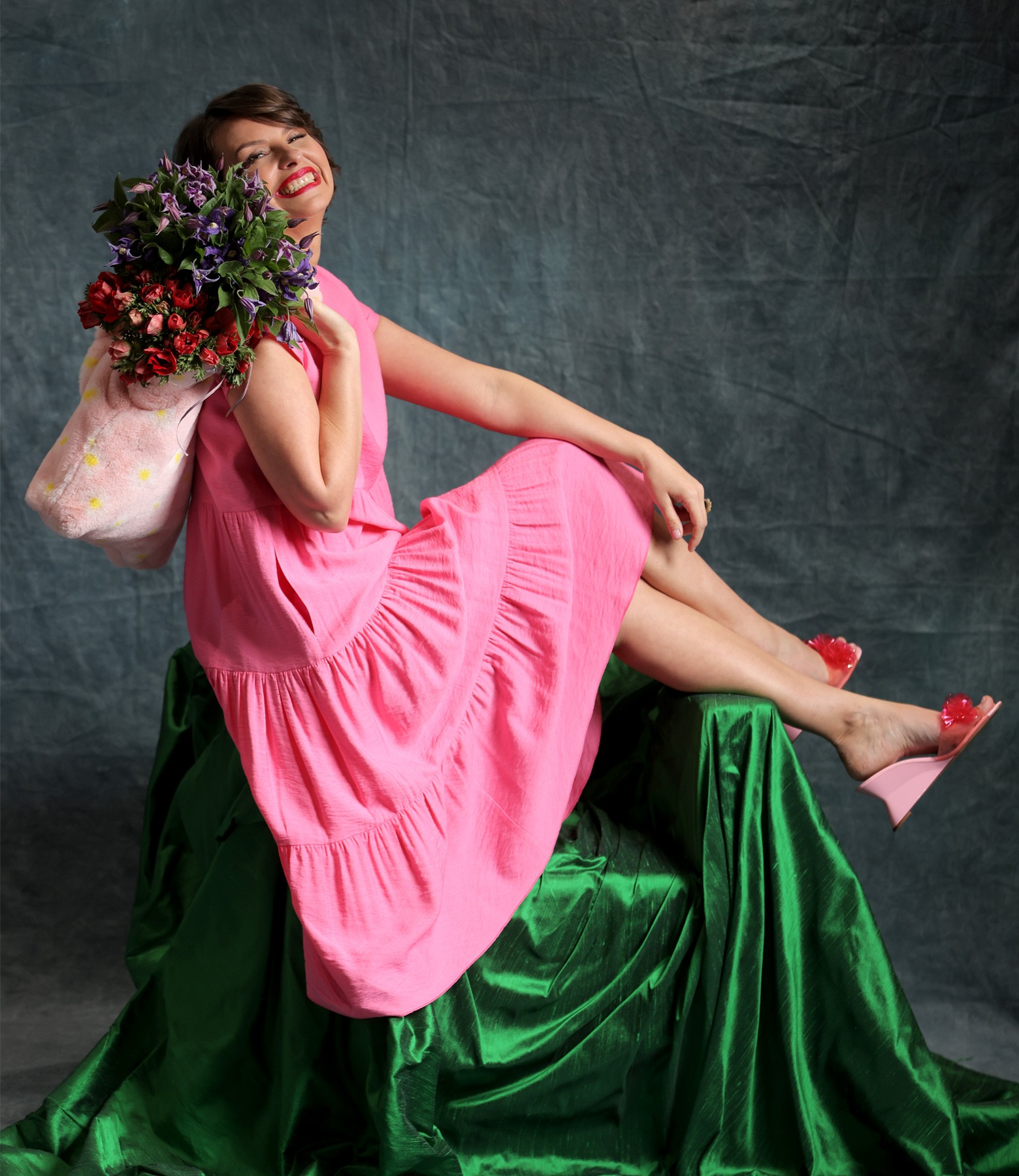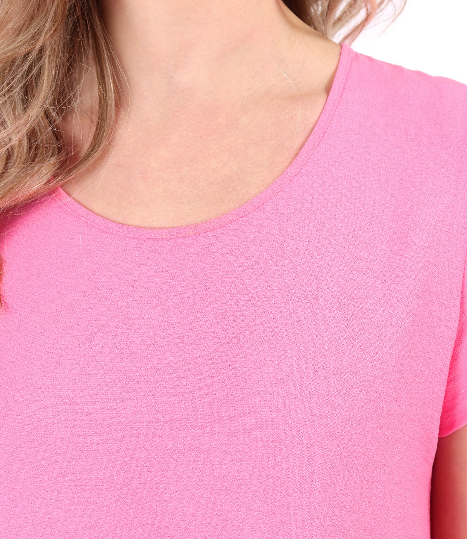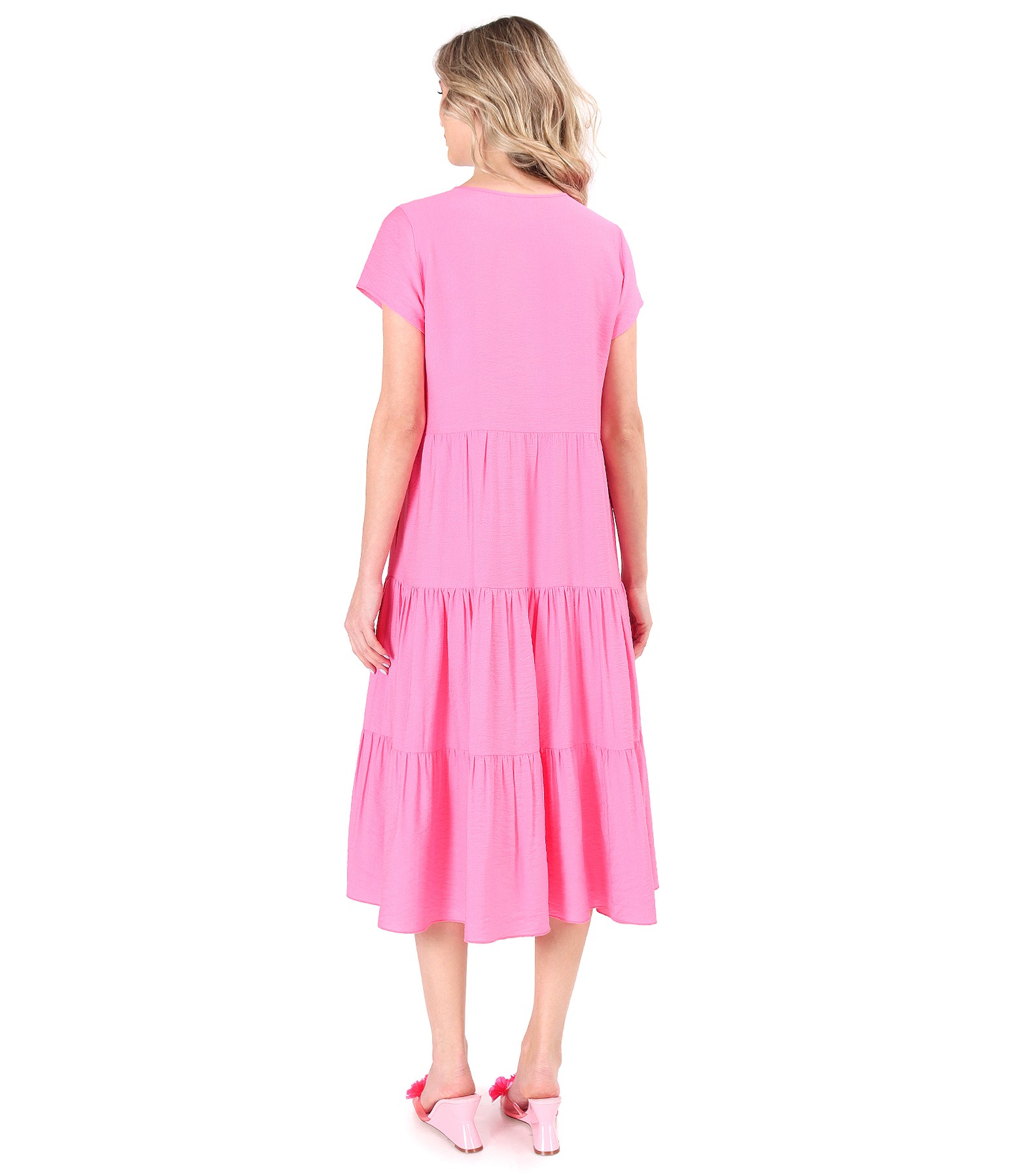 Rochie midi cu volane din viscoza usor creponata (Roz), marimea