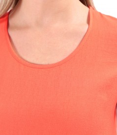 Rochie midi cu volane din viscoza usor creponata (Rosu Orange), marimea