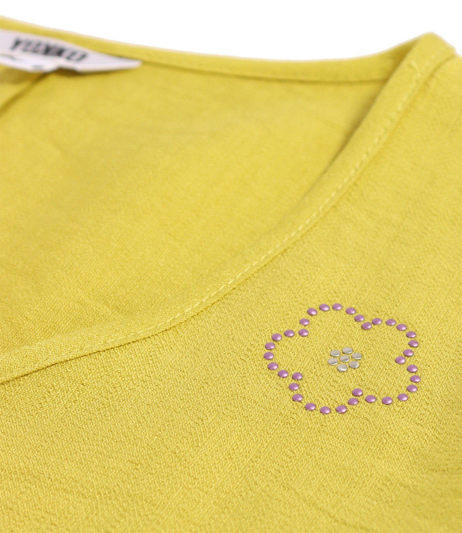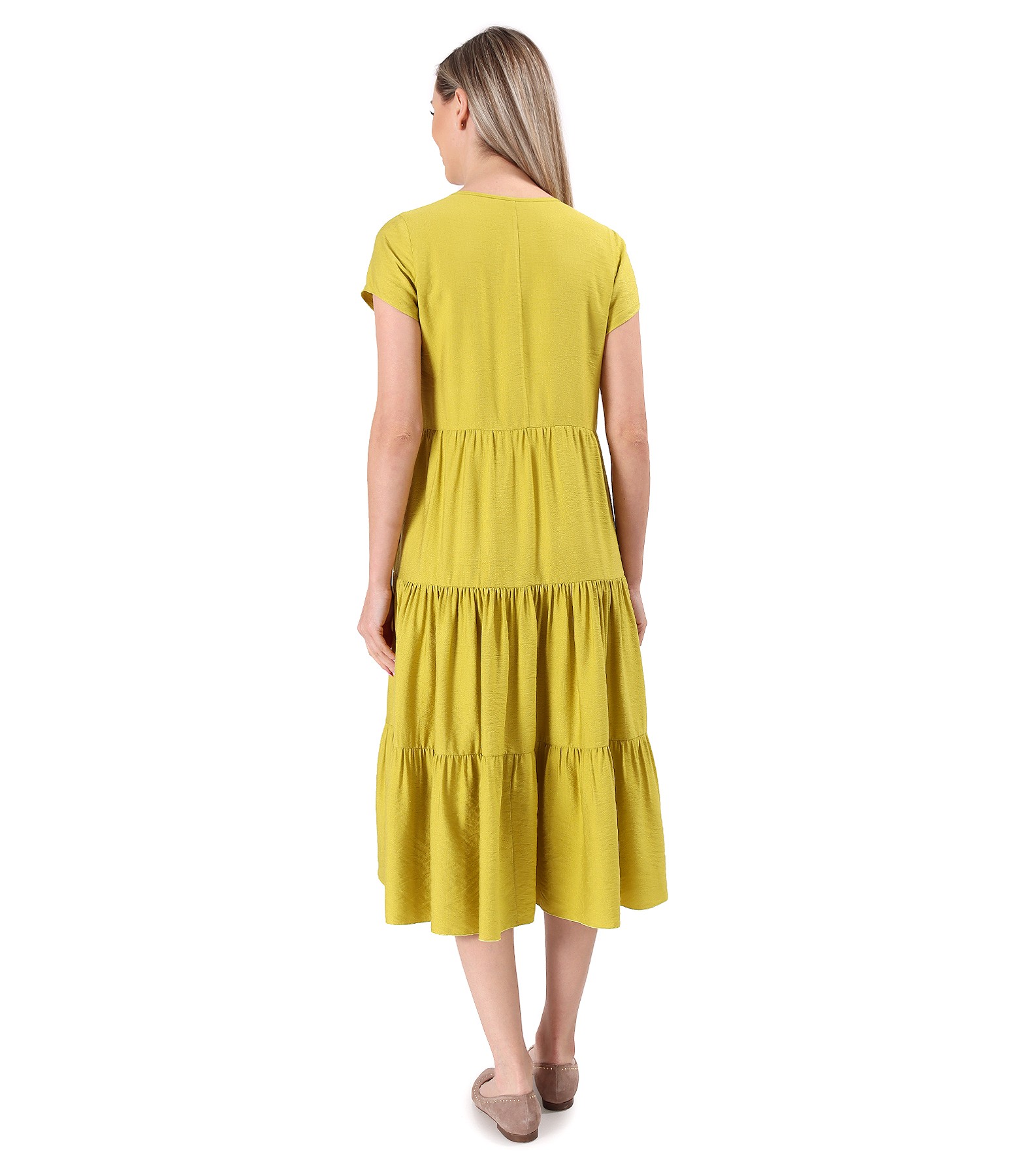Rochie midi cu volane din viscoza usor creponata (Galben), marimea